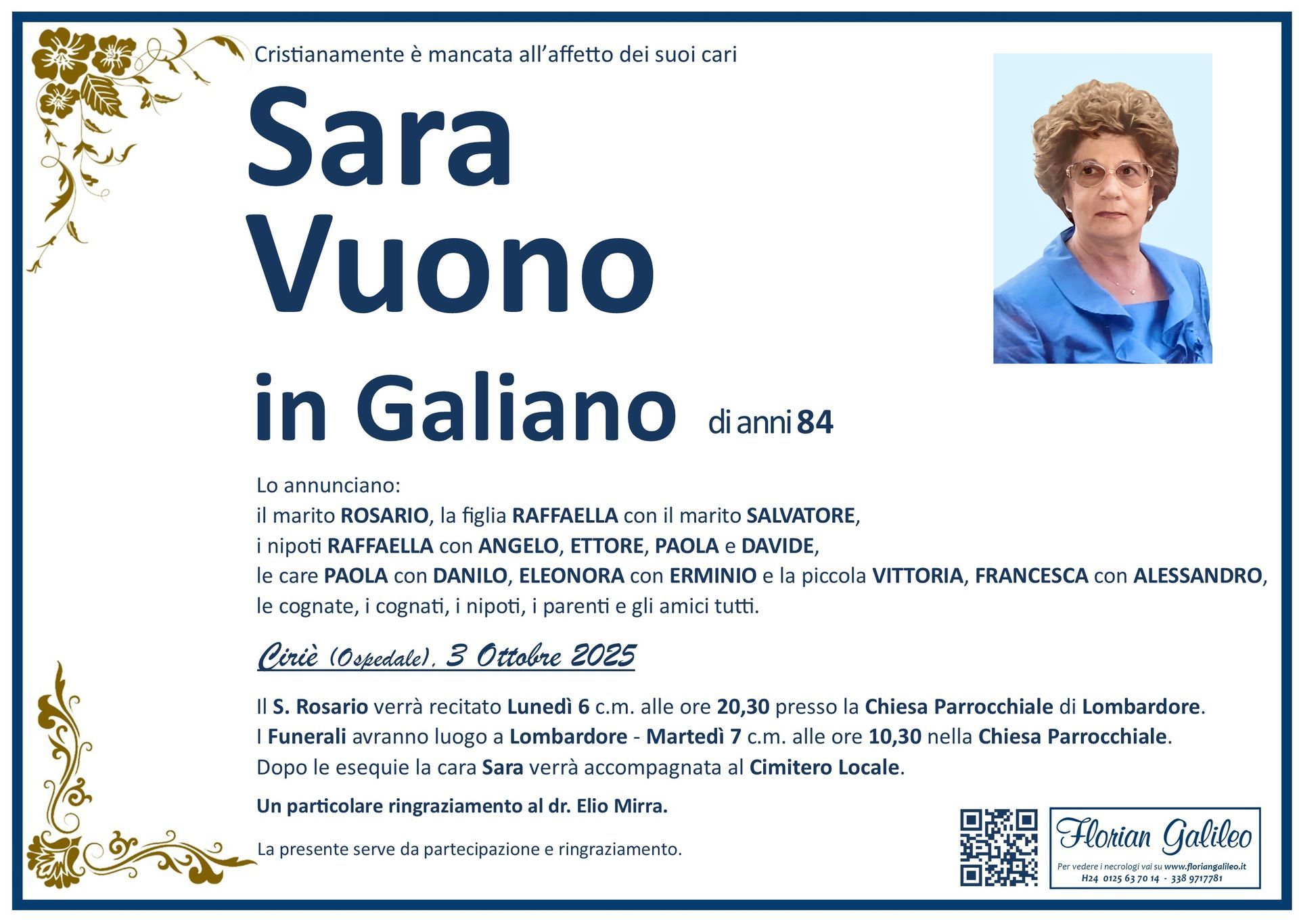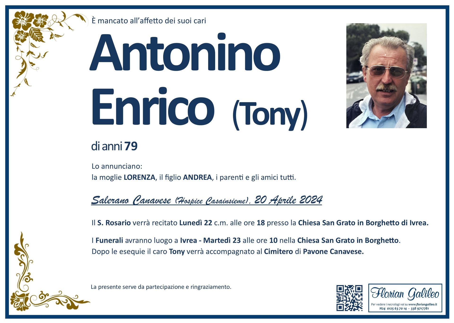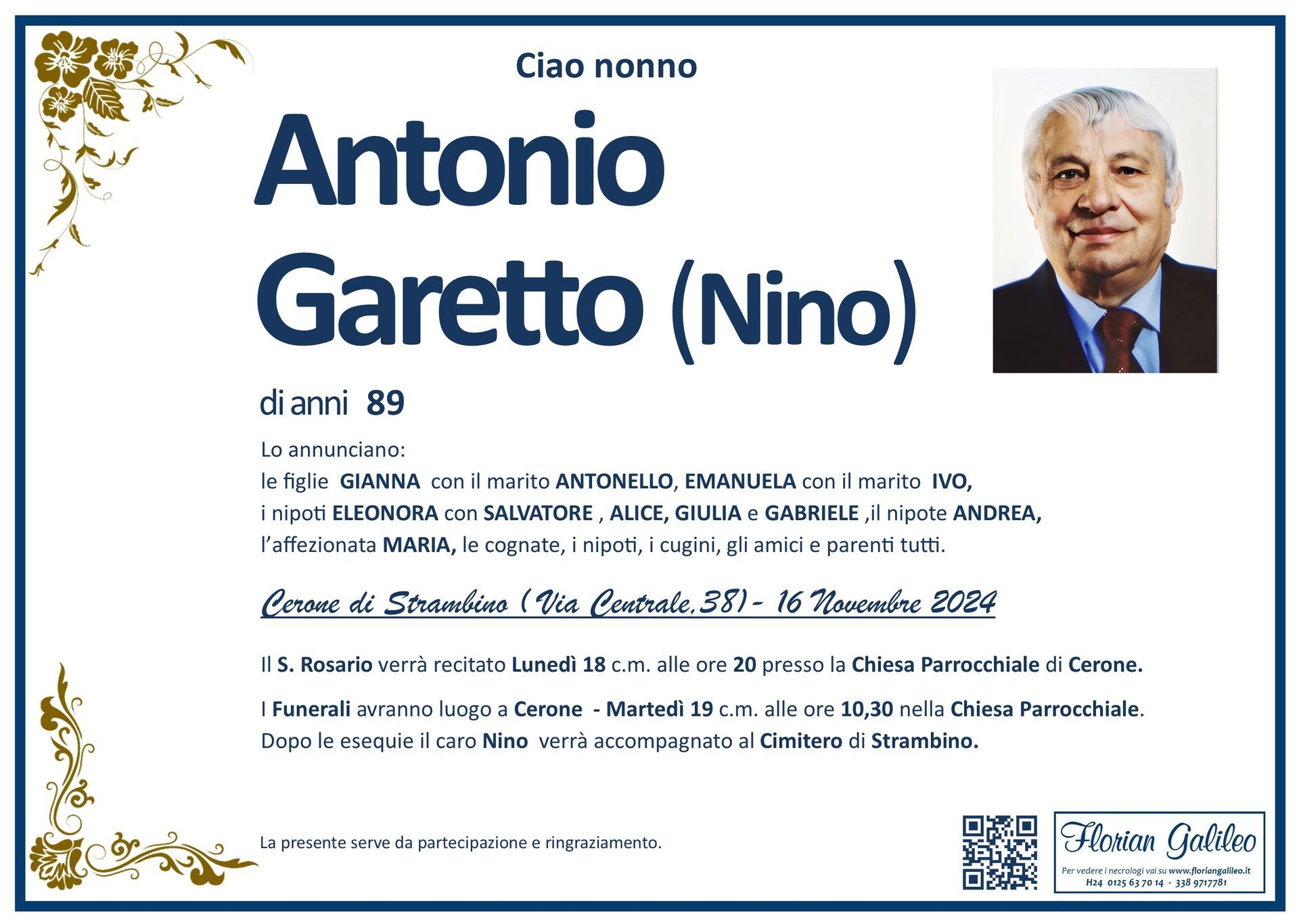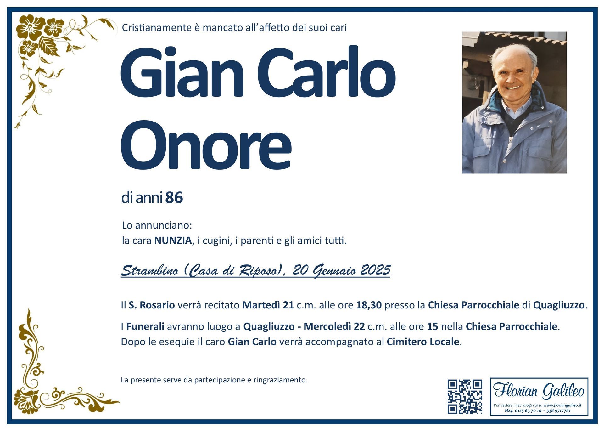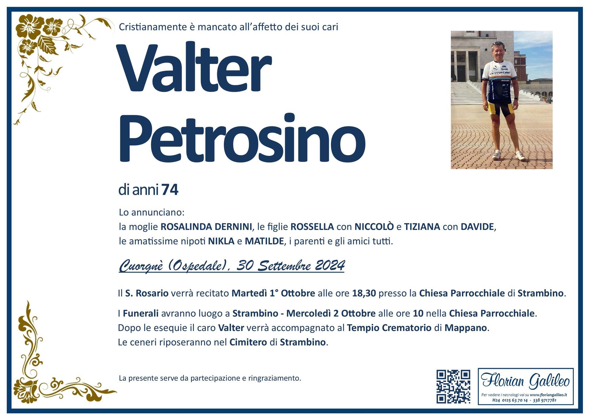 La Florian Galileo, ditta di Onoranze funebri di Strambino, Ivrea e dintorni ha creato questa pagina per rendere visibili anche on line le epigrafi dei cari defunti e per dare,