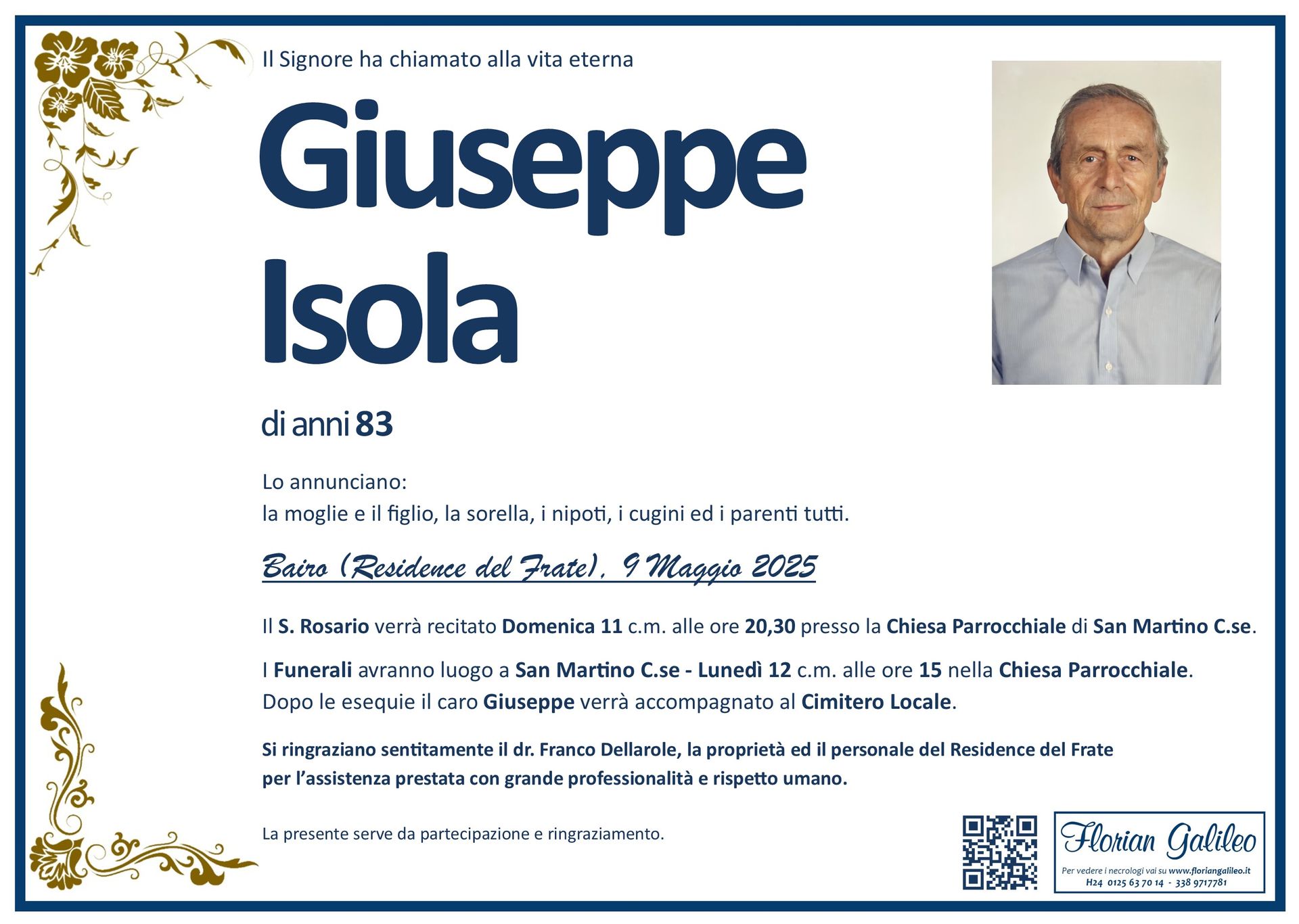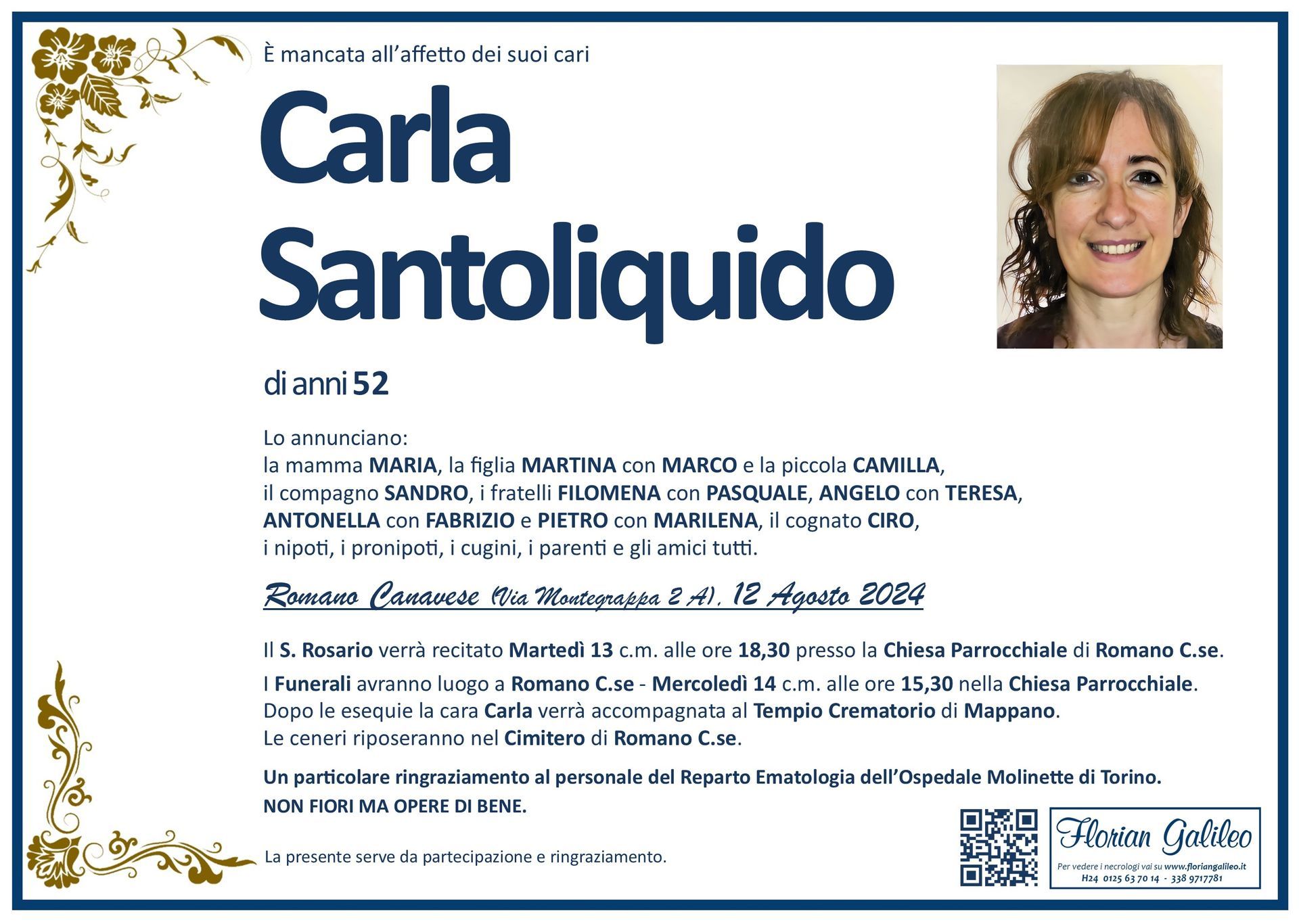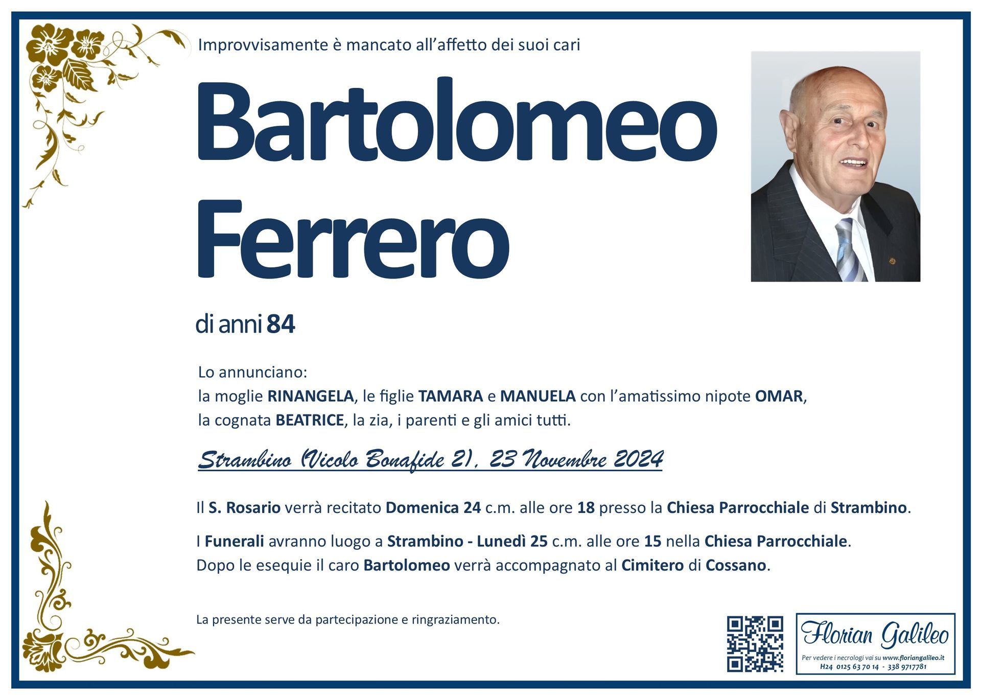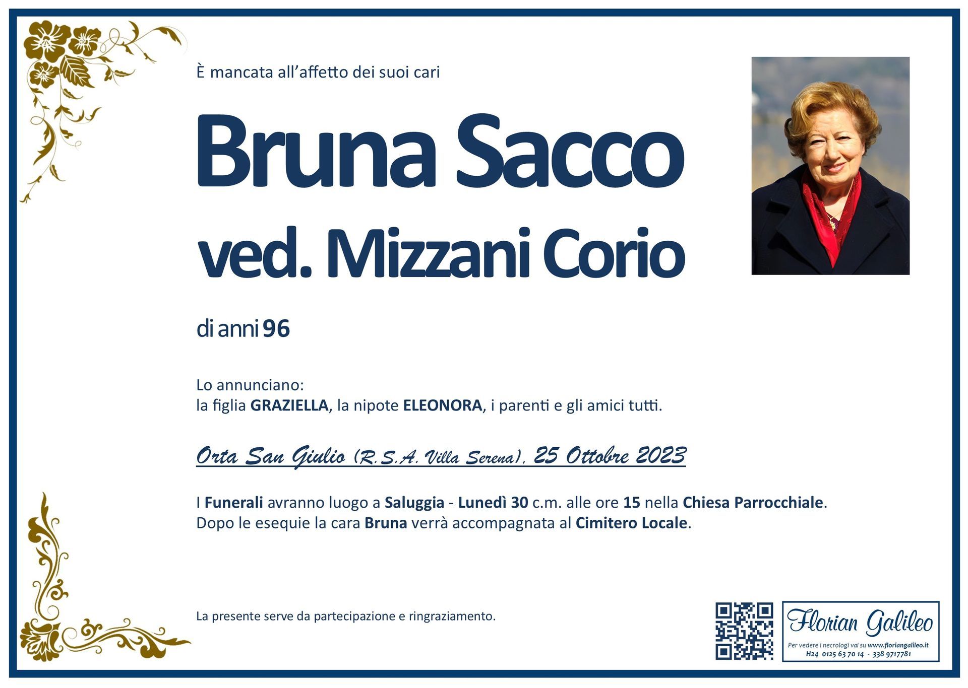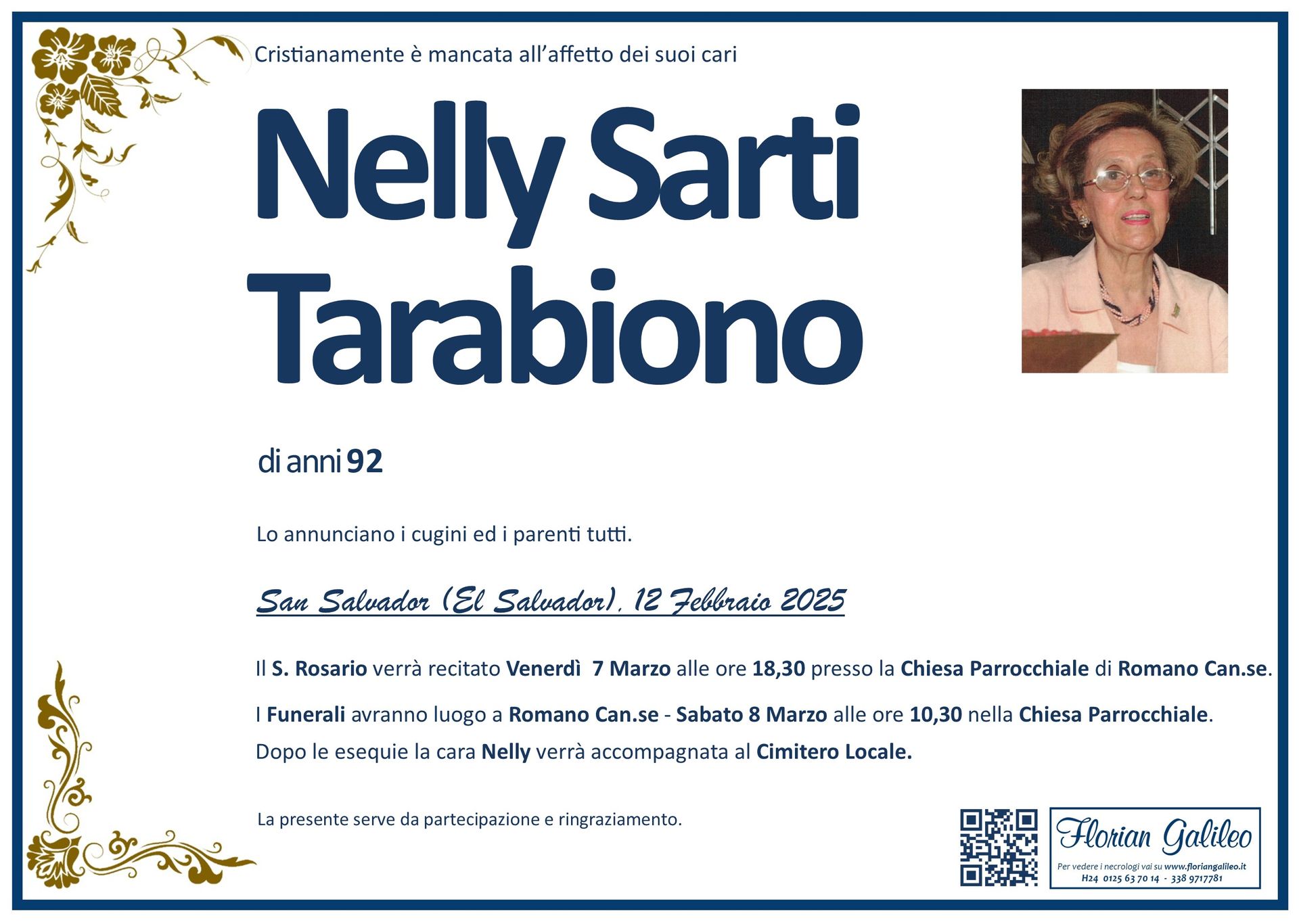 La Florian Galileo, ditta di Onoranze funebri di Strambino, Ivrea e dintorni ha creato questa pagina per rendere visibili anche on line le epigrafi dei cari defunti e per dare,