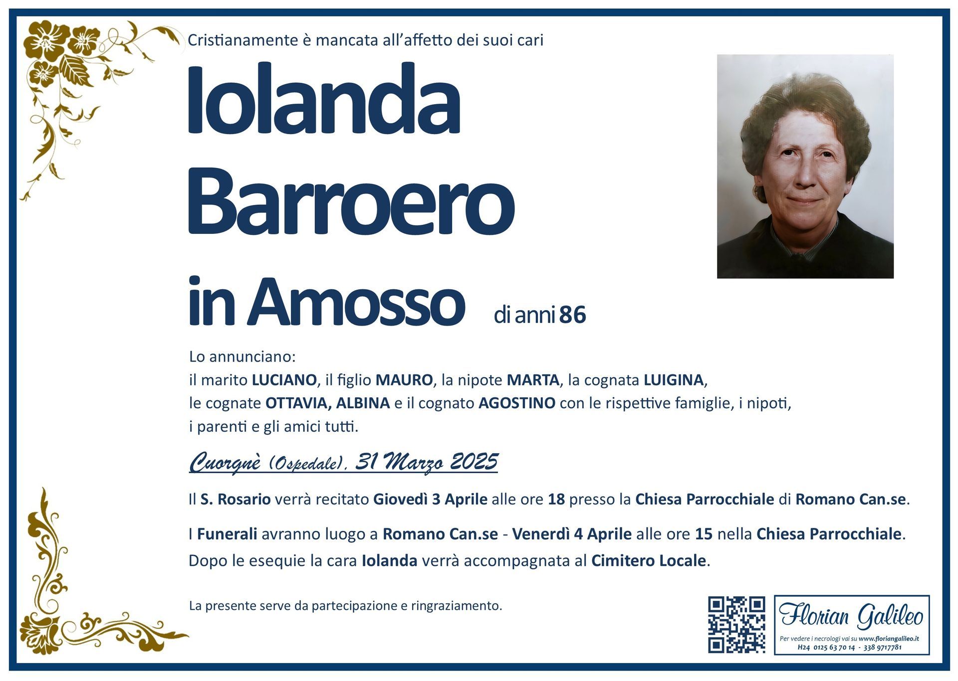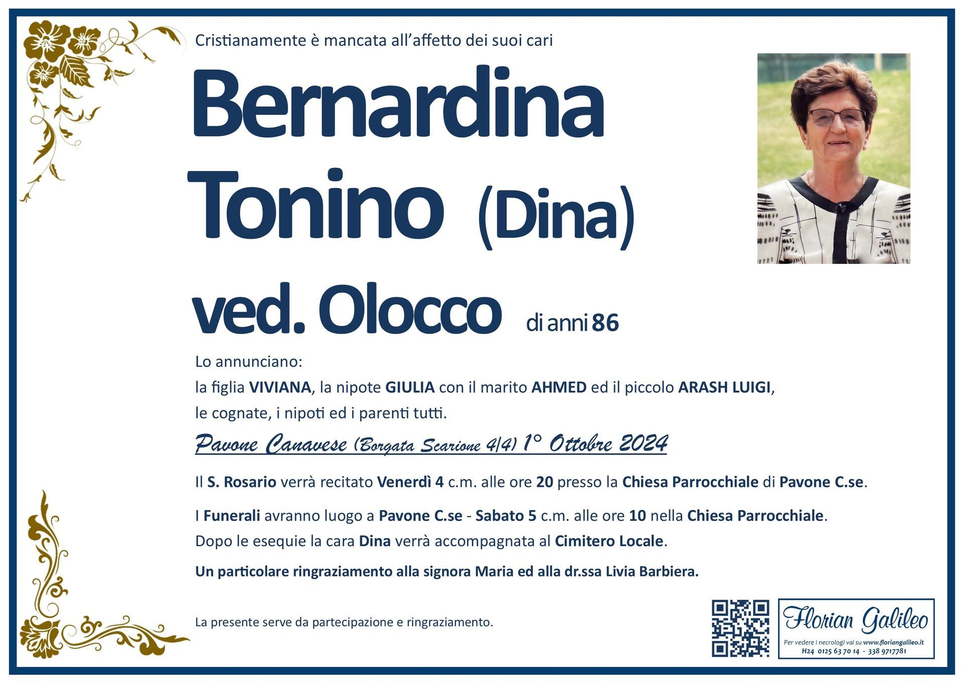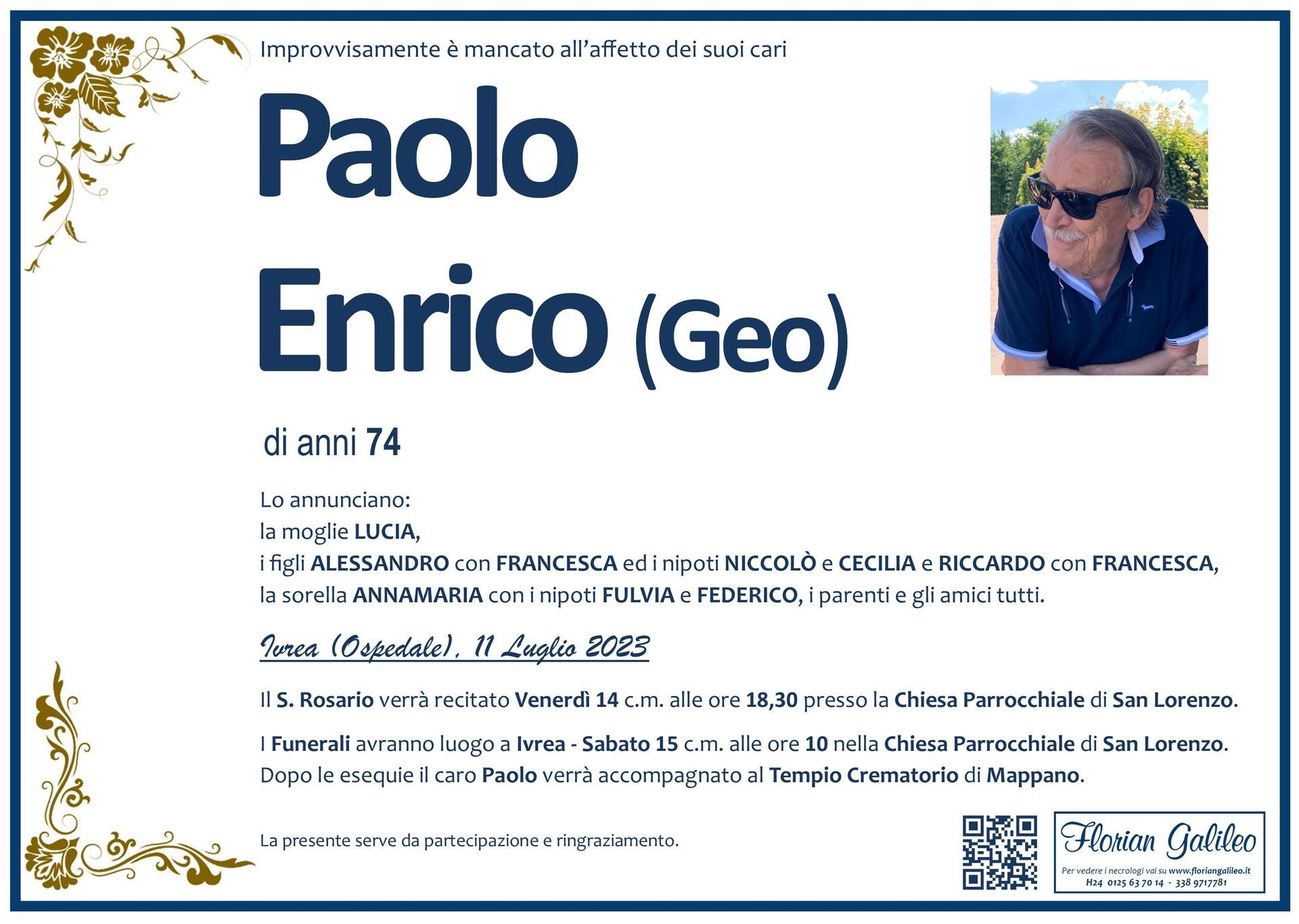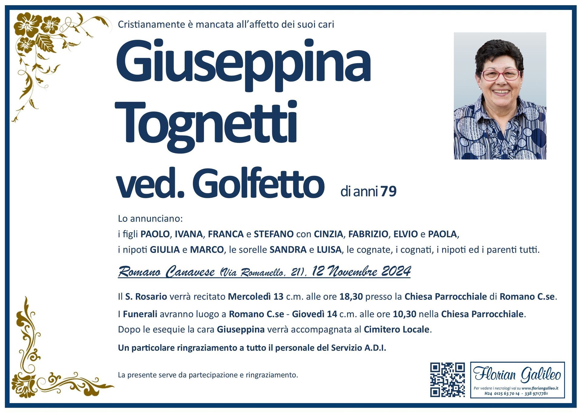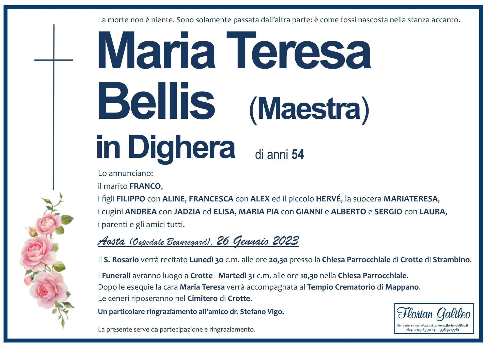 La Florian Galileo, ditta di Onoranze funebri di Strambino, Ivrea e dintorni ha creato questa pagina per rendere visibili anche on line le epigrafi dei cari defunti e per dare,
