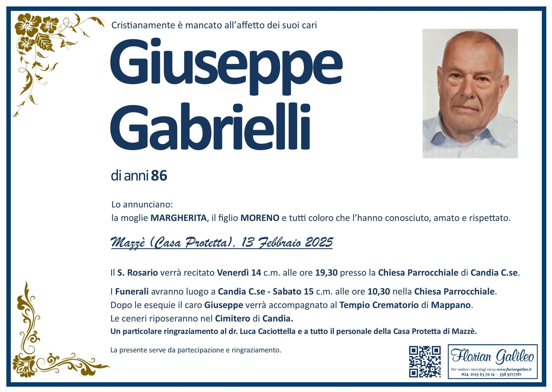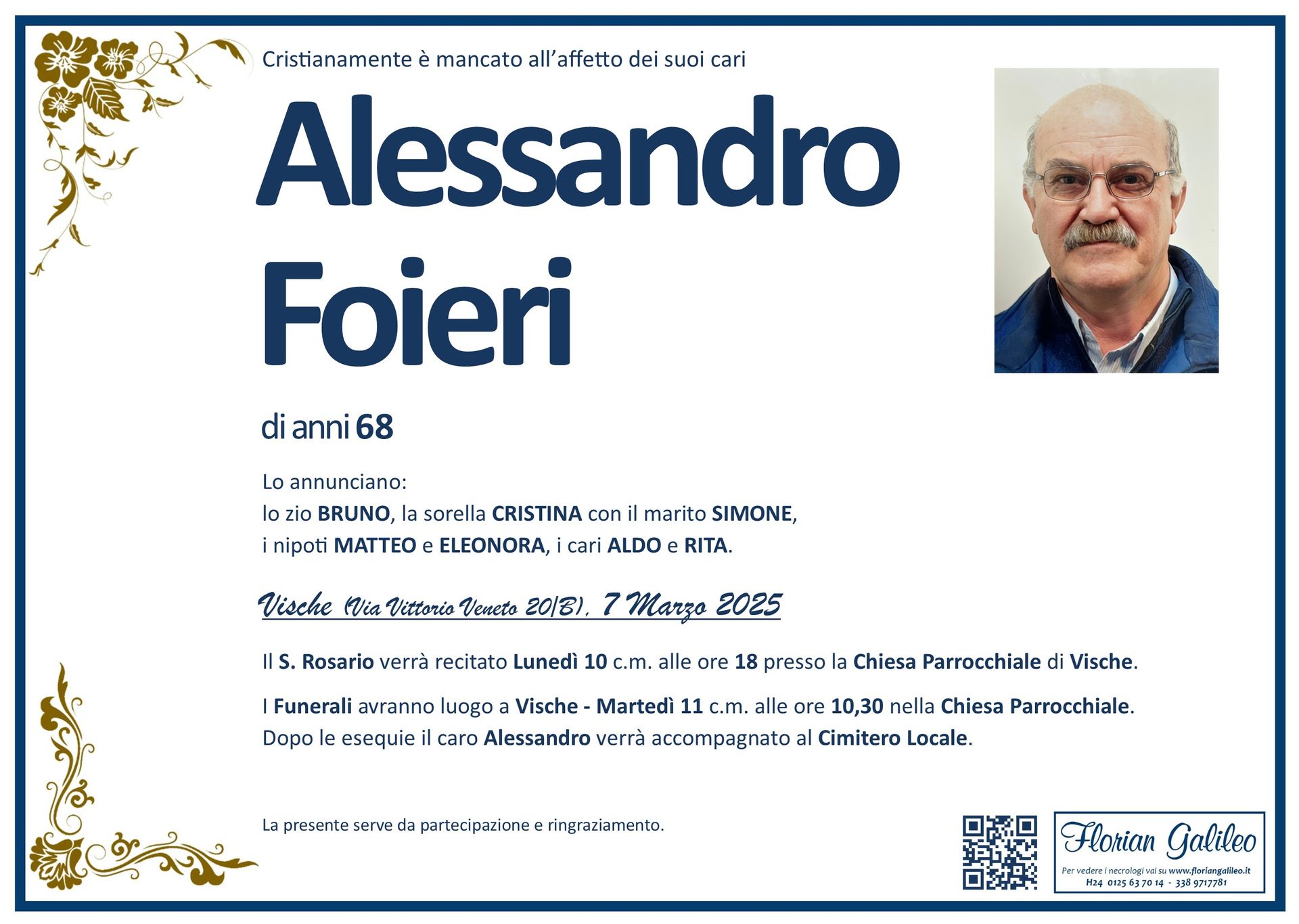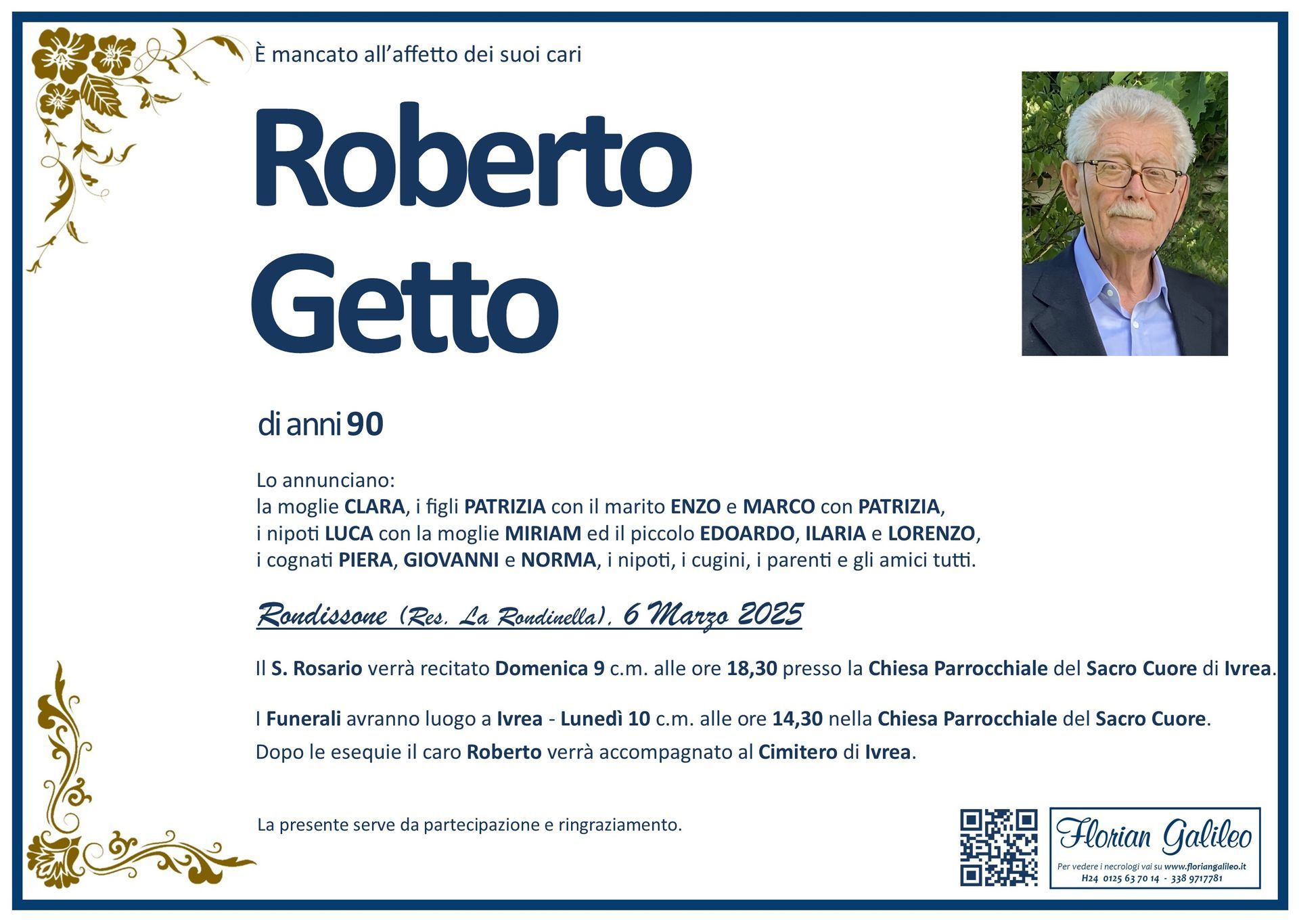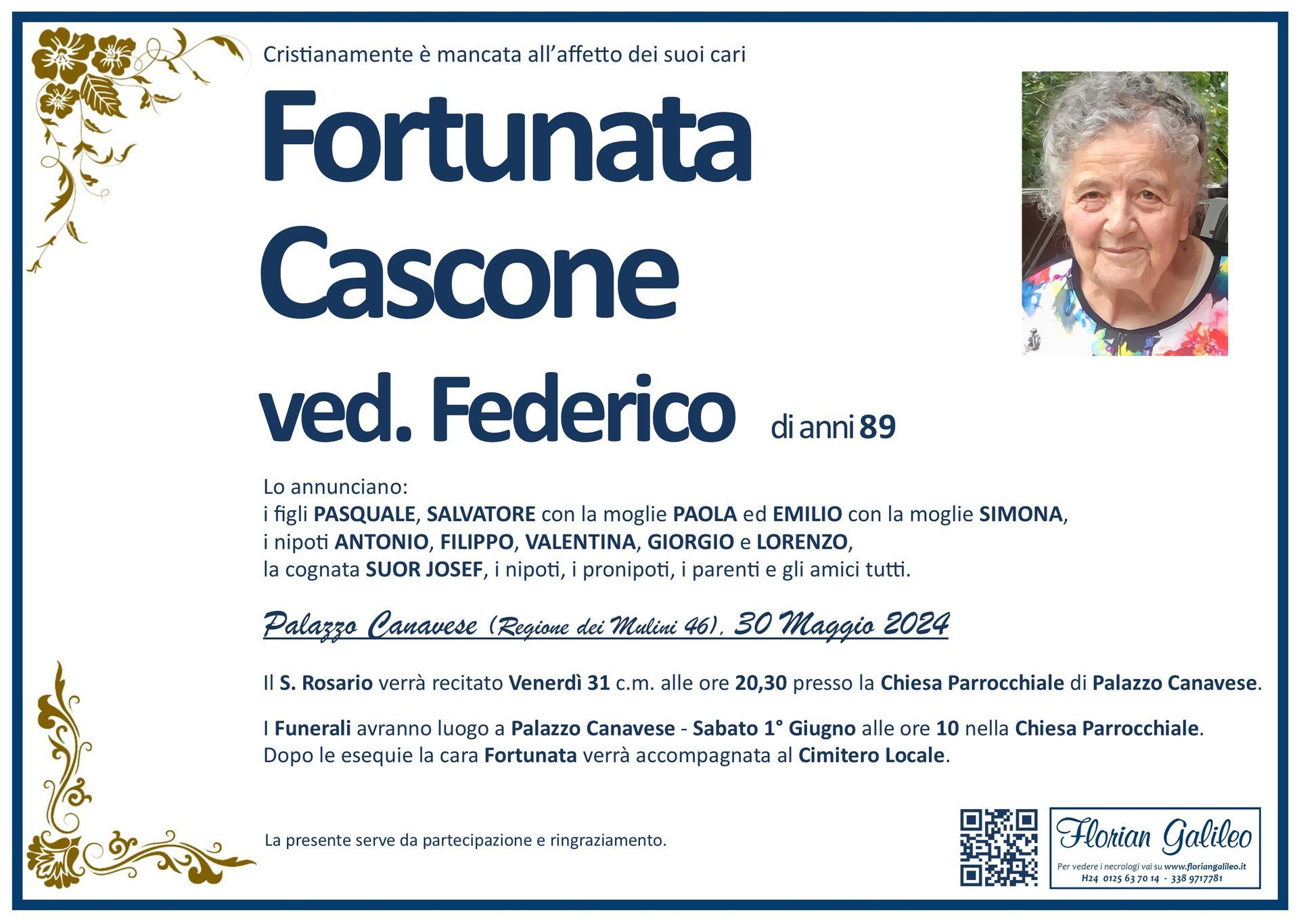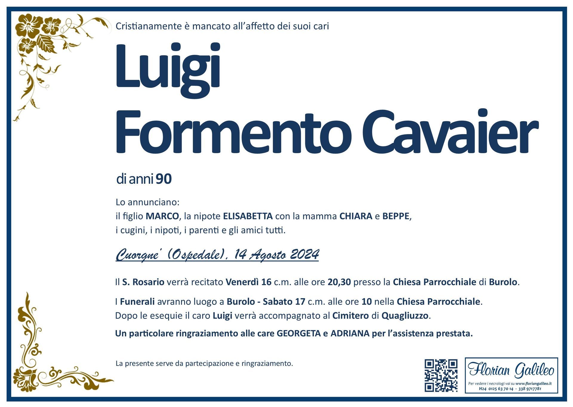 La Florian Galileo, ditta di Onoranze funebri di Strambino, Ivrea e dintorni ha creato questa pagina per rendere visibili anche on line le epigrafi dei cari defunti e per dare,