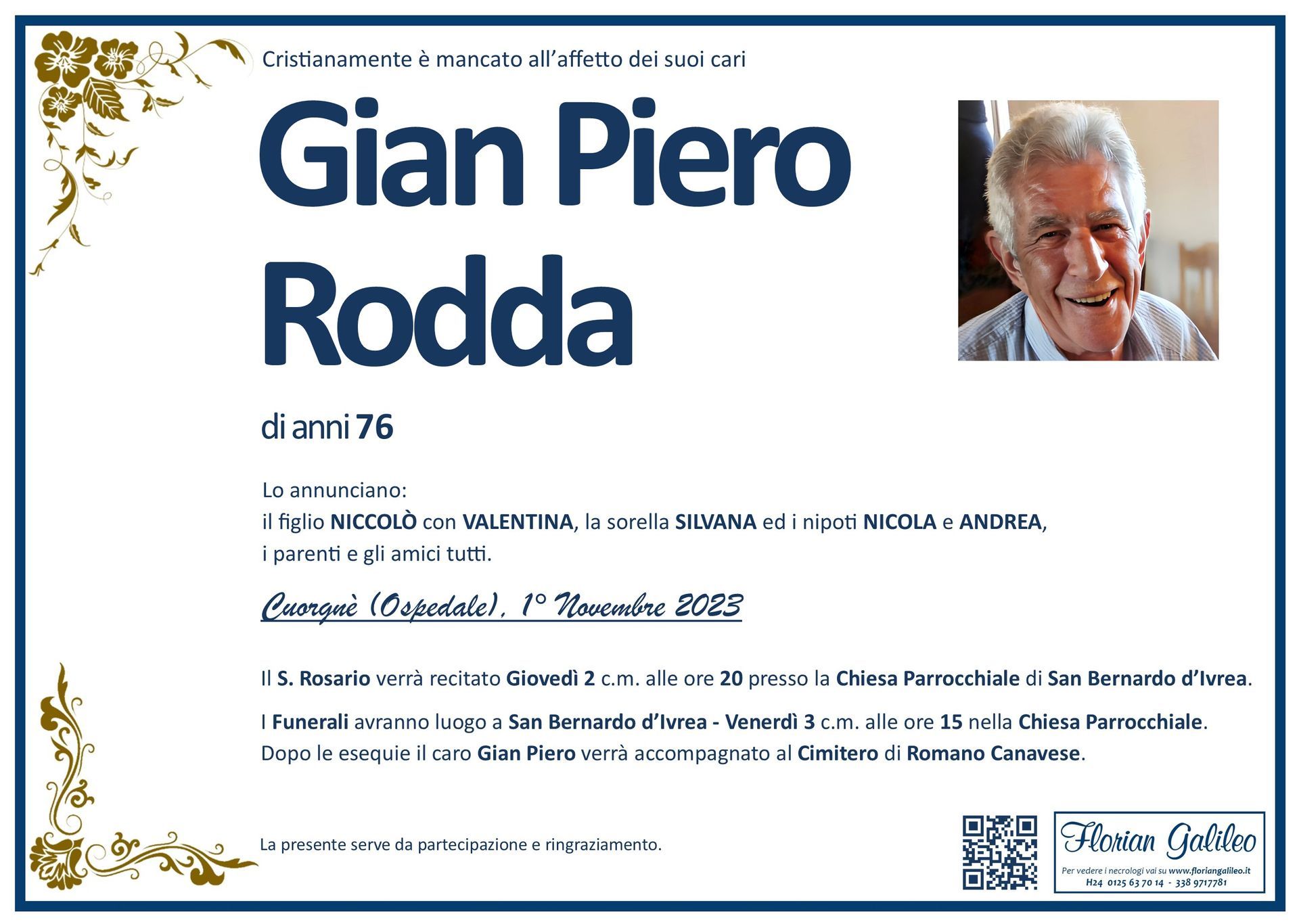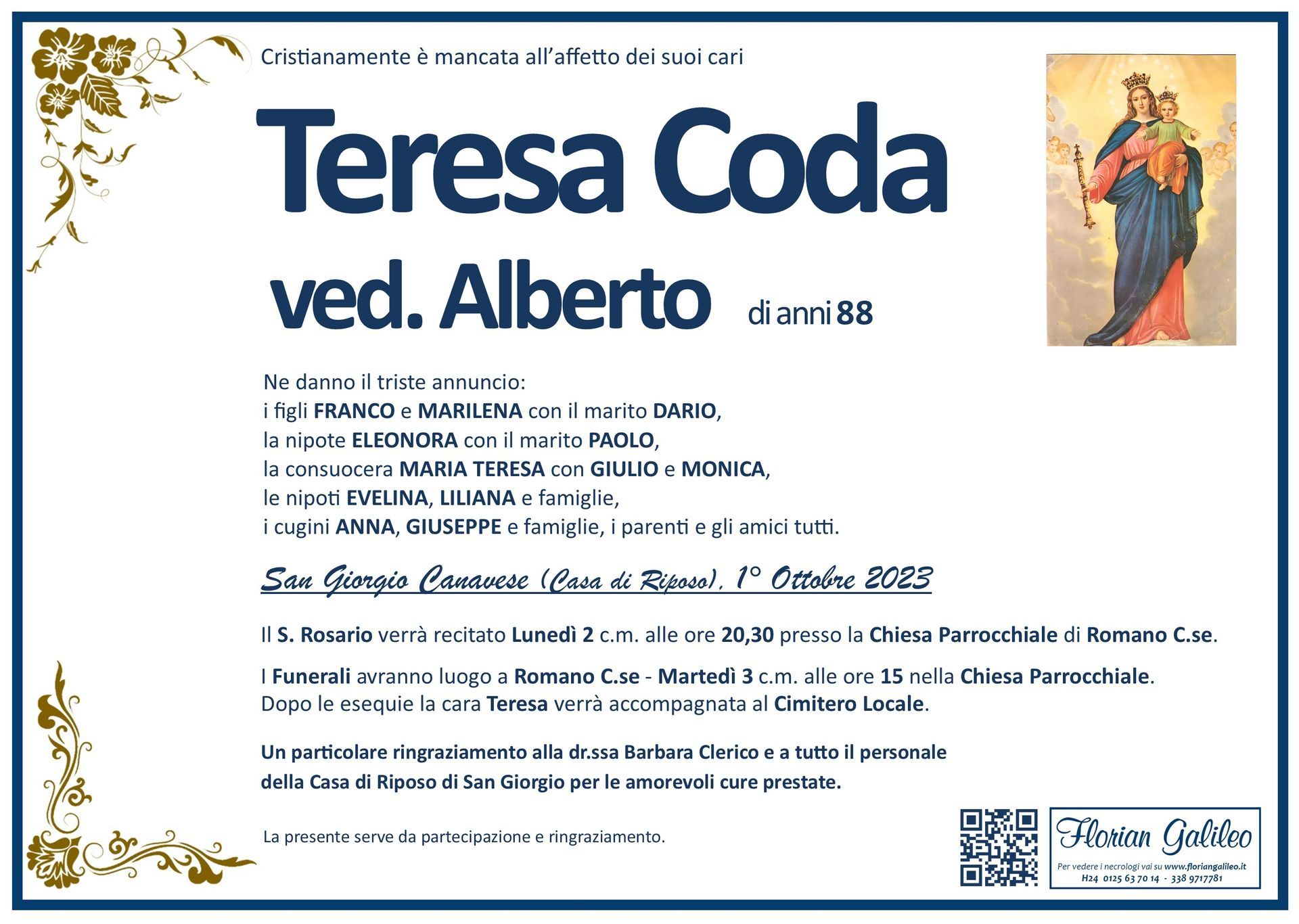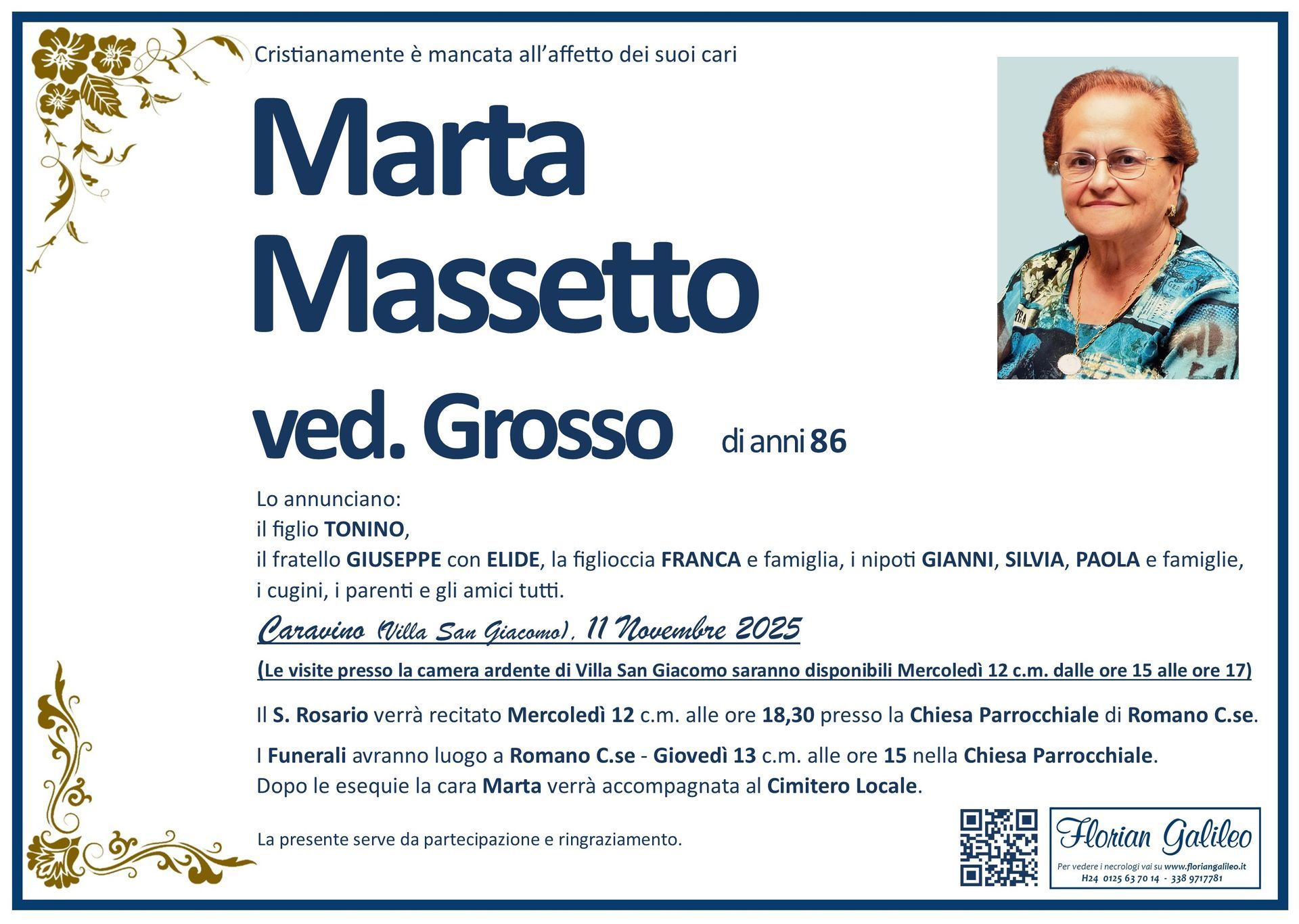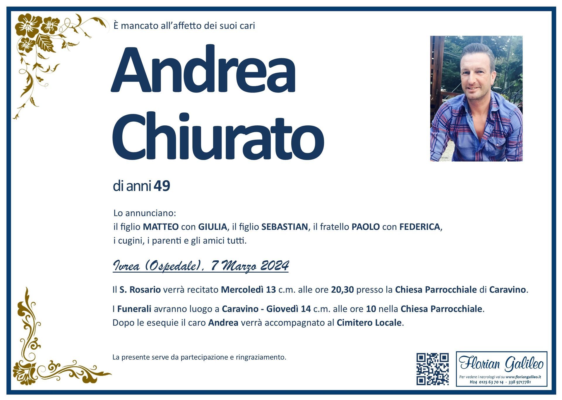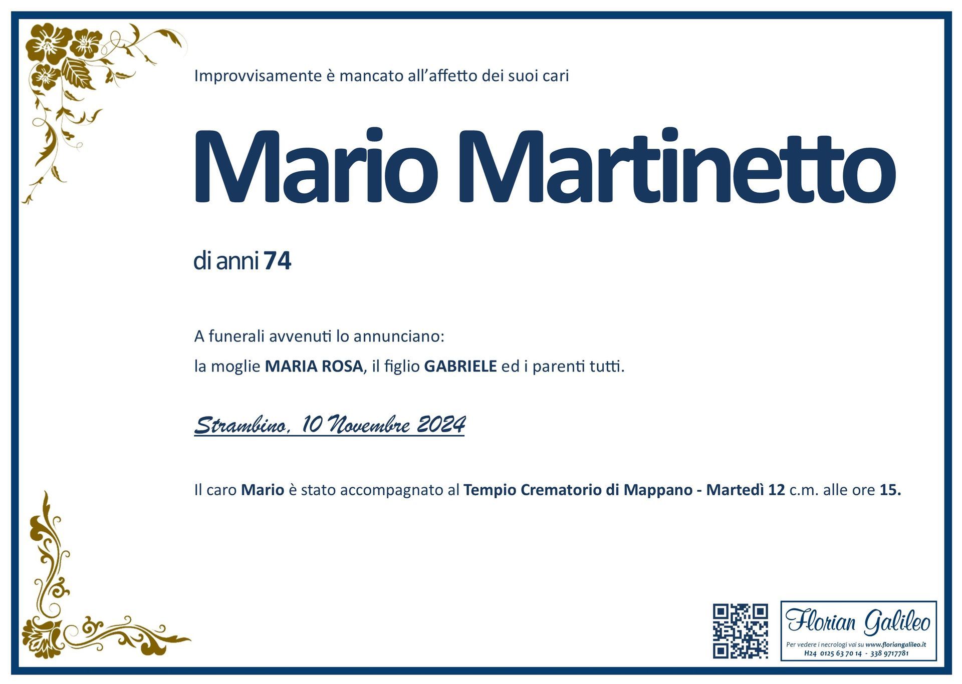 La Florian Galileo, ditta di Onoranze funebri di Strambino, Ivrea e dintorni ha creato questa pagina per rendere visibili anche on line le epigrafi dei cari defunti e per dare,