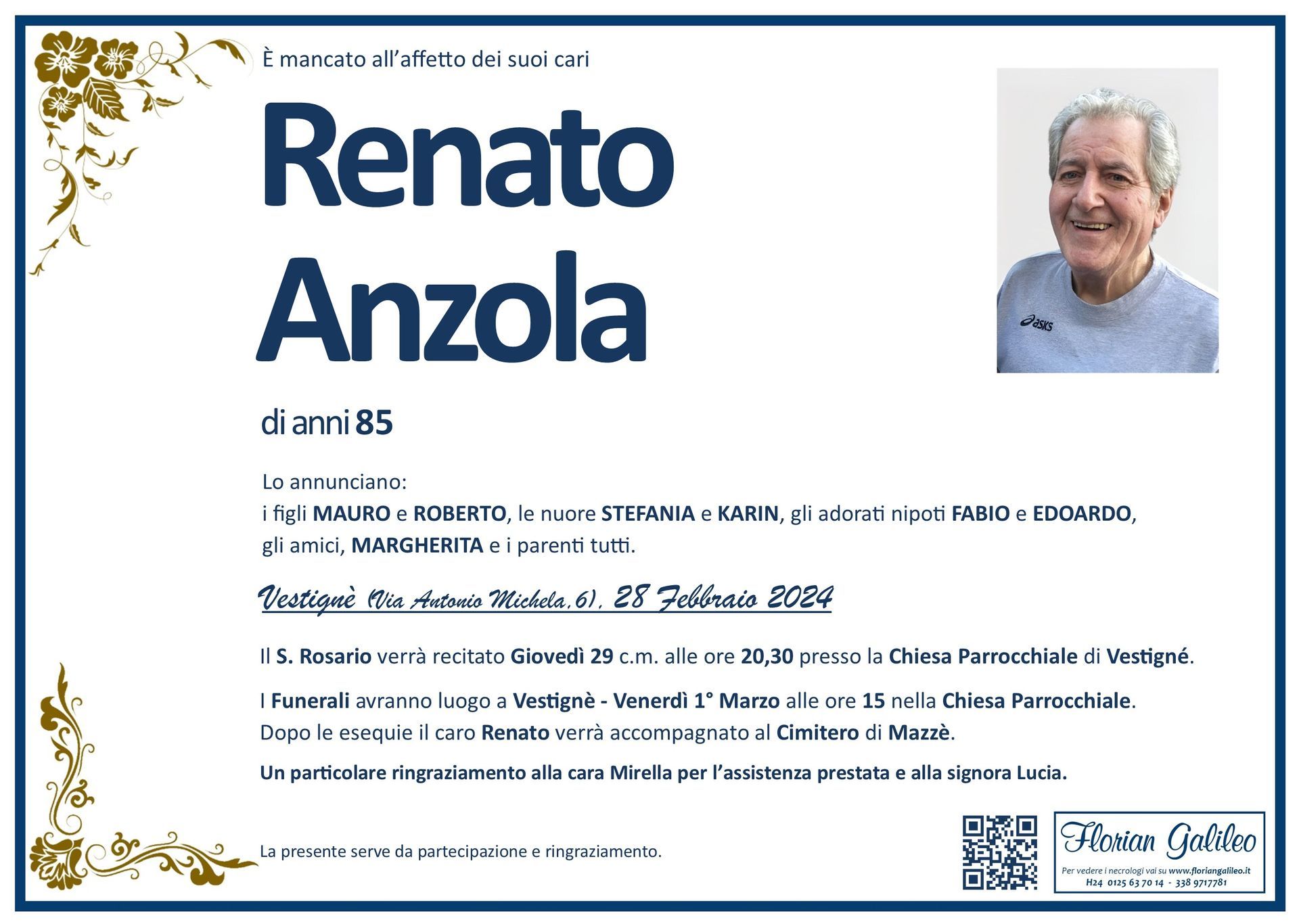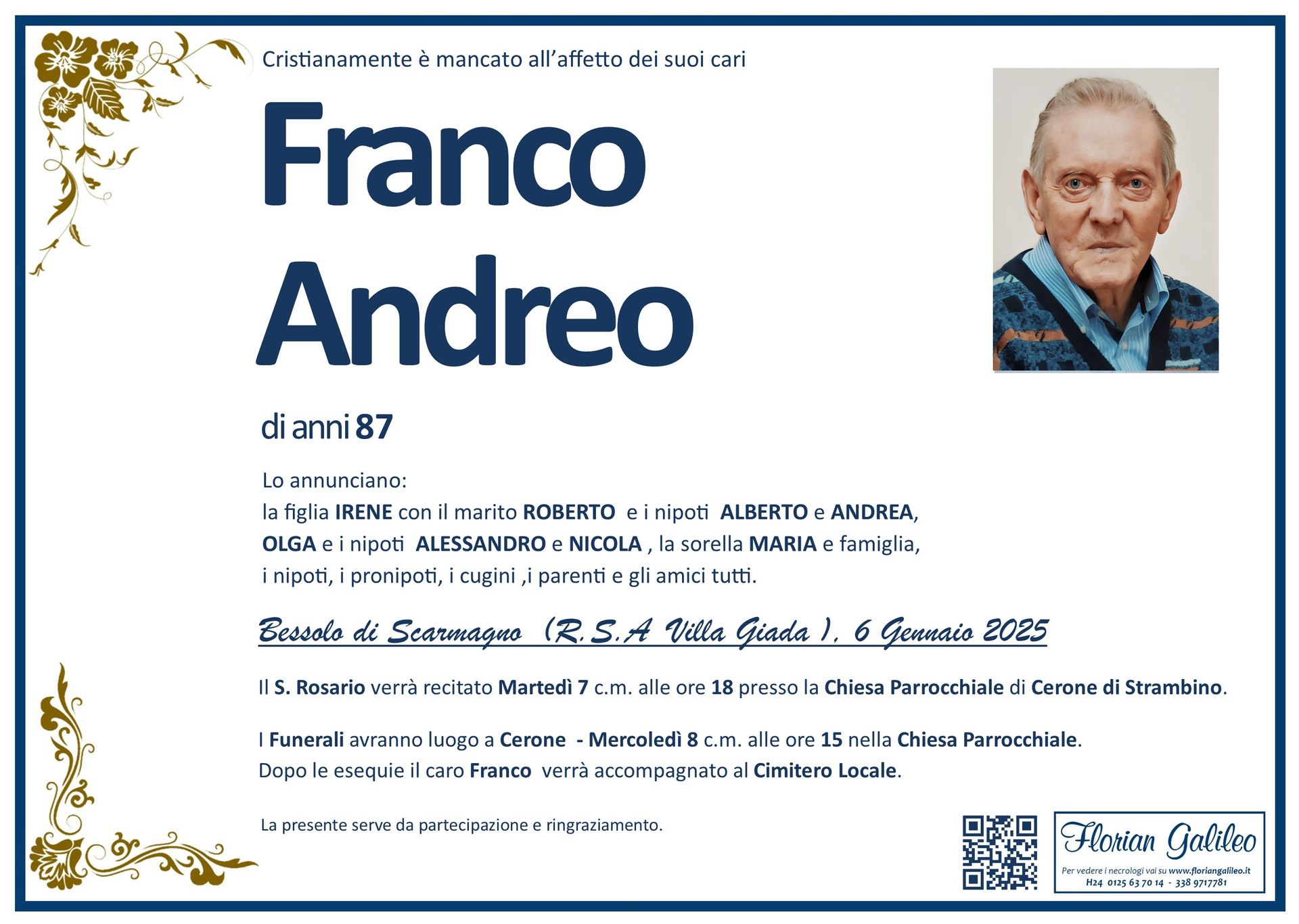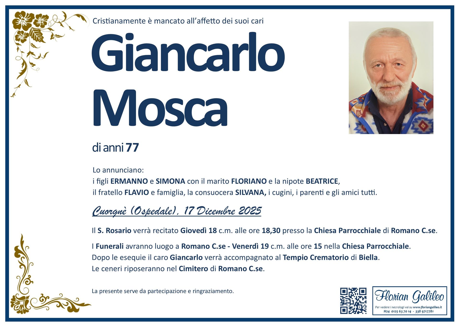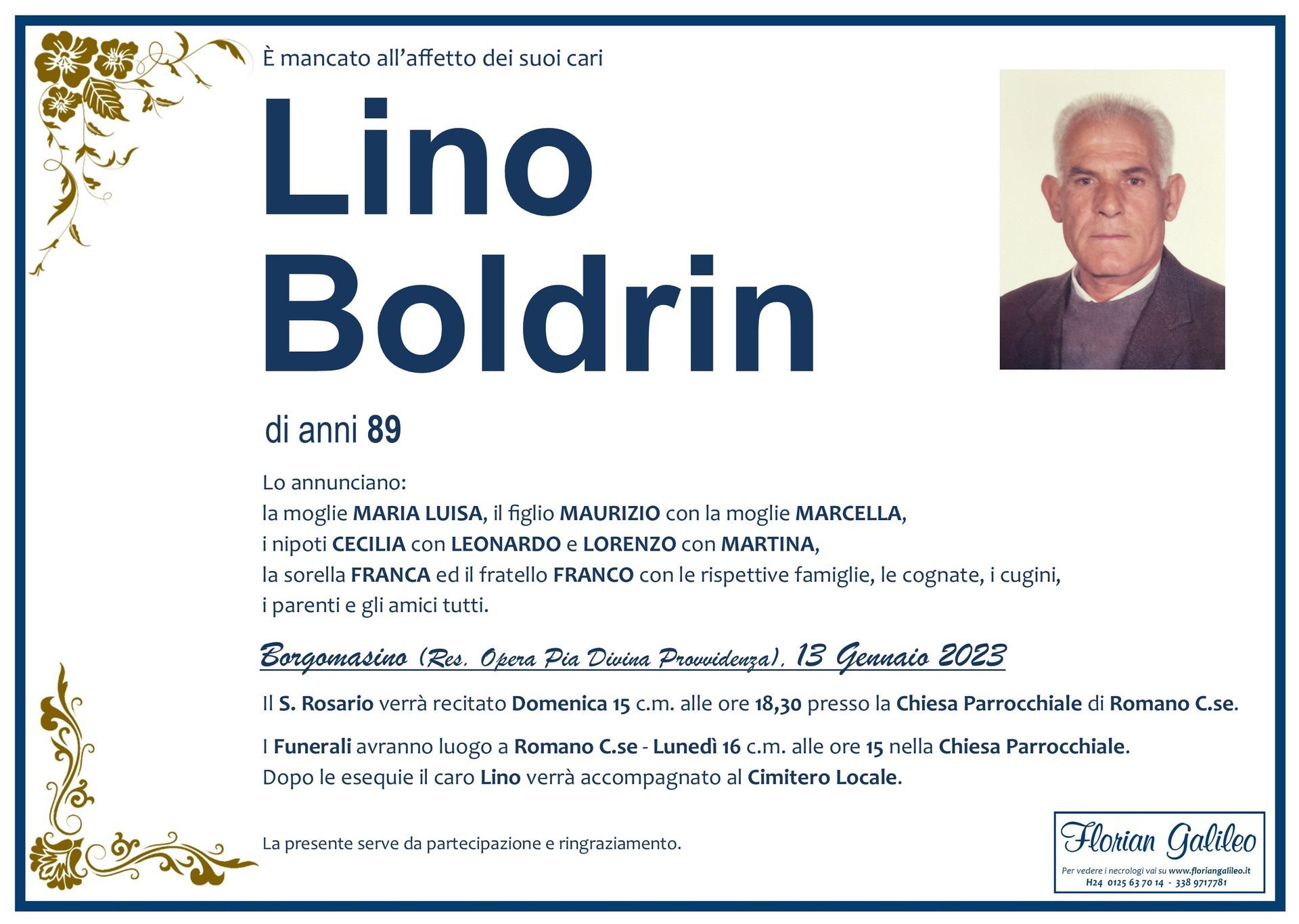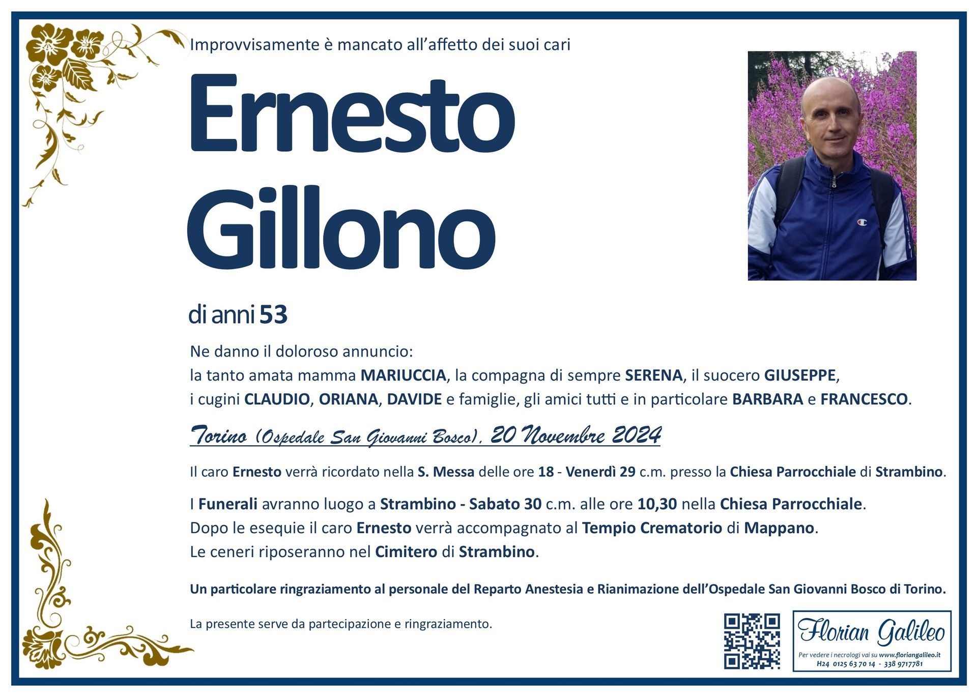 La Florian Galileo, ditta di Onoranze funebri di Strambino, Ivrea e dintorni ha creato questa pagina per rendere visibili anche on line le epigrafi dei cari defunti e per dare,