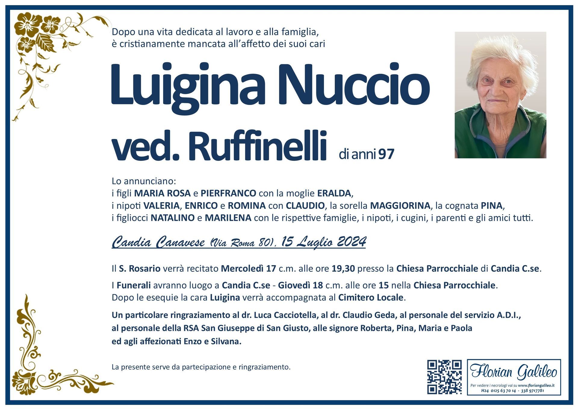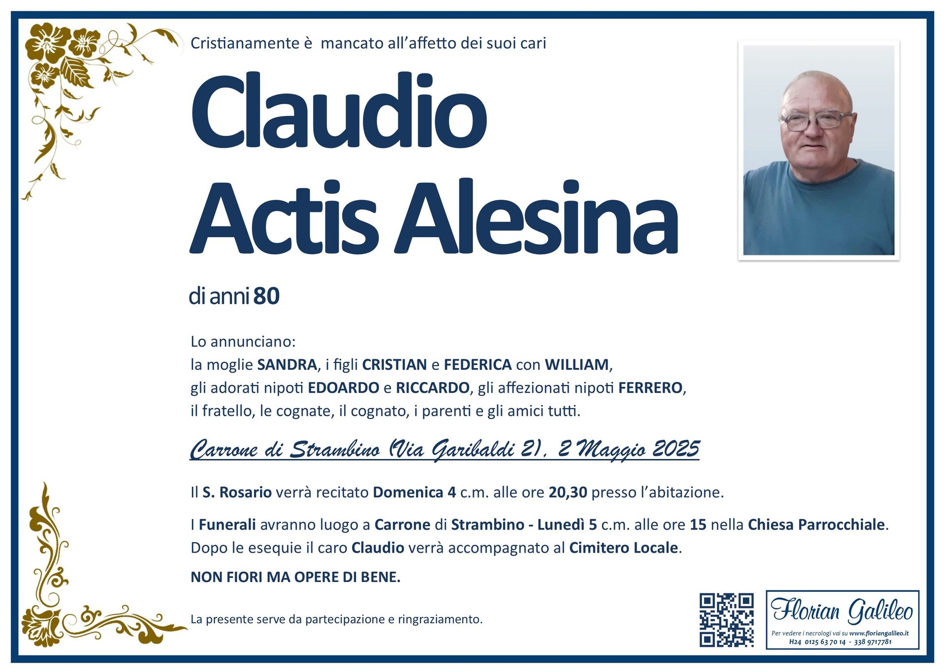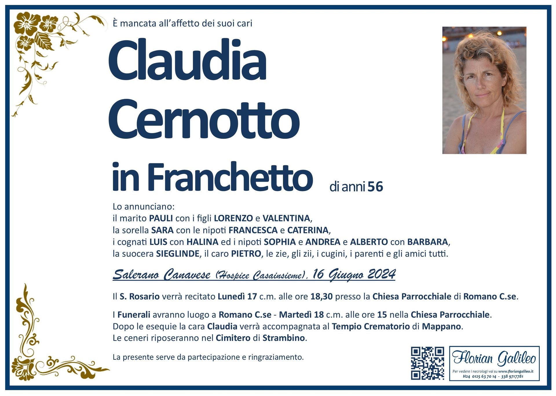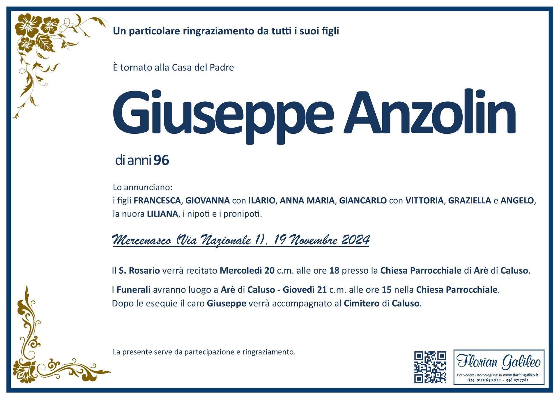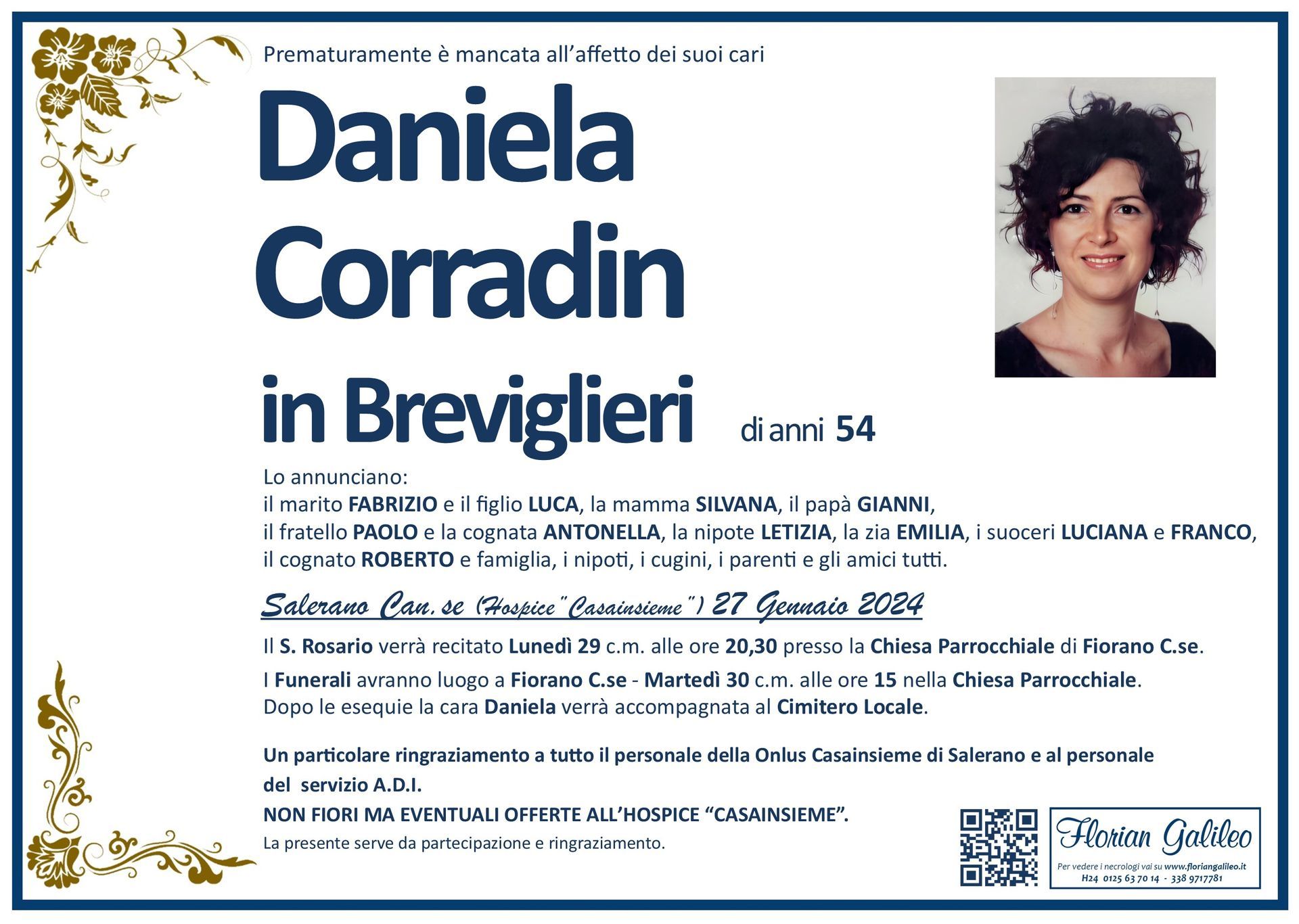 La Florian Galileo, ditta di Onoranze funebri di Strambino, Ivrea e dintorni ha creato questa pagina per rendere visibili anche on line le epigrafi dei cari defunti e per dare,
