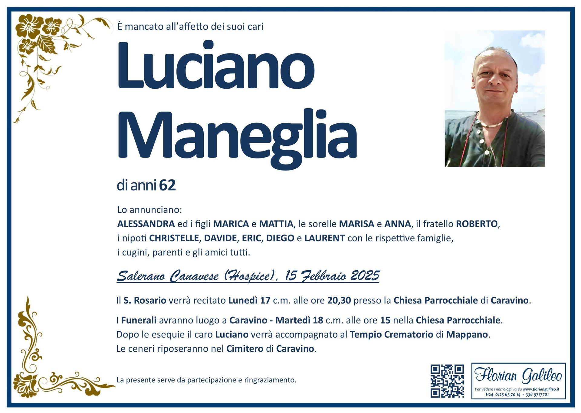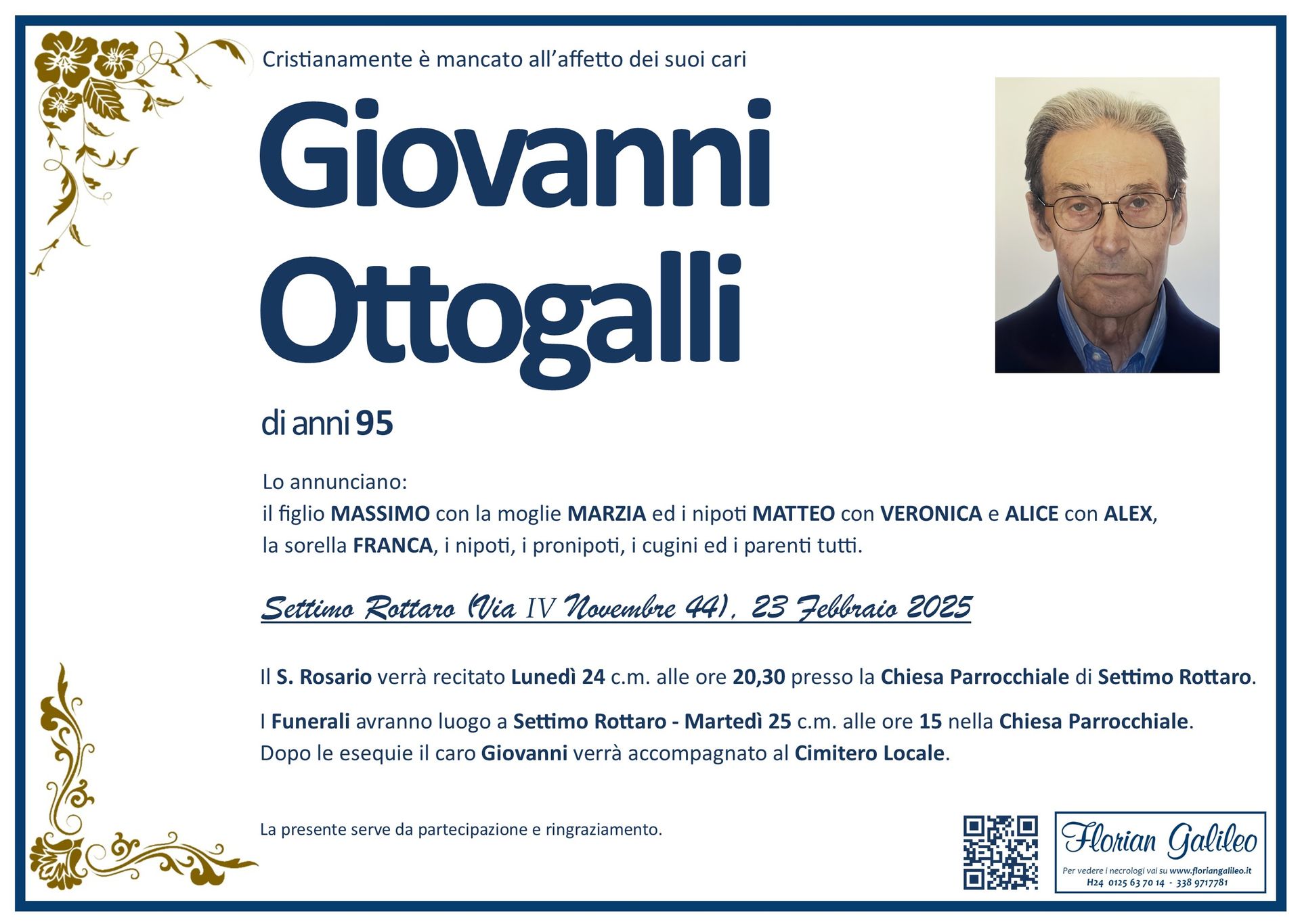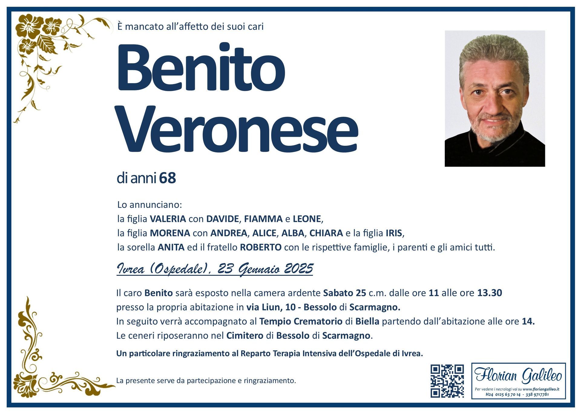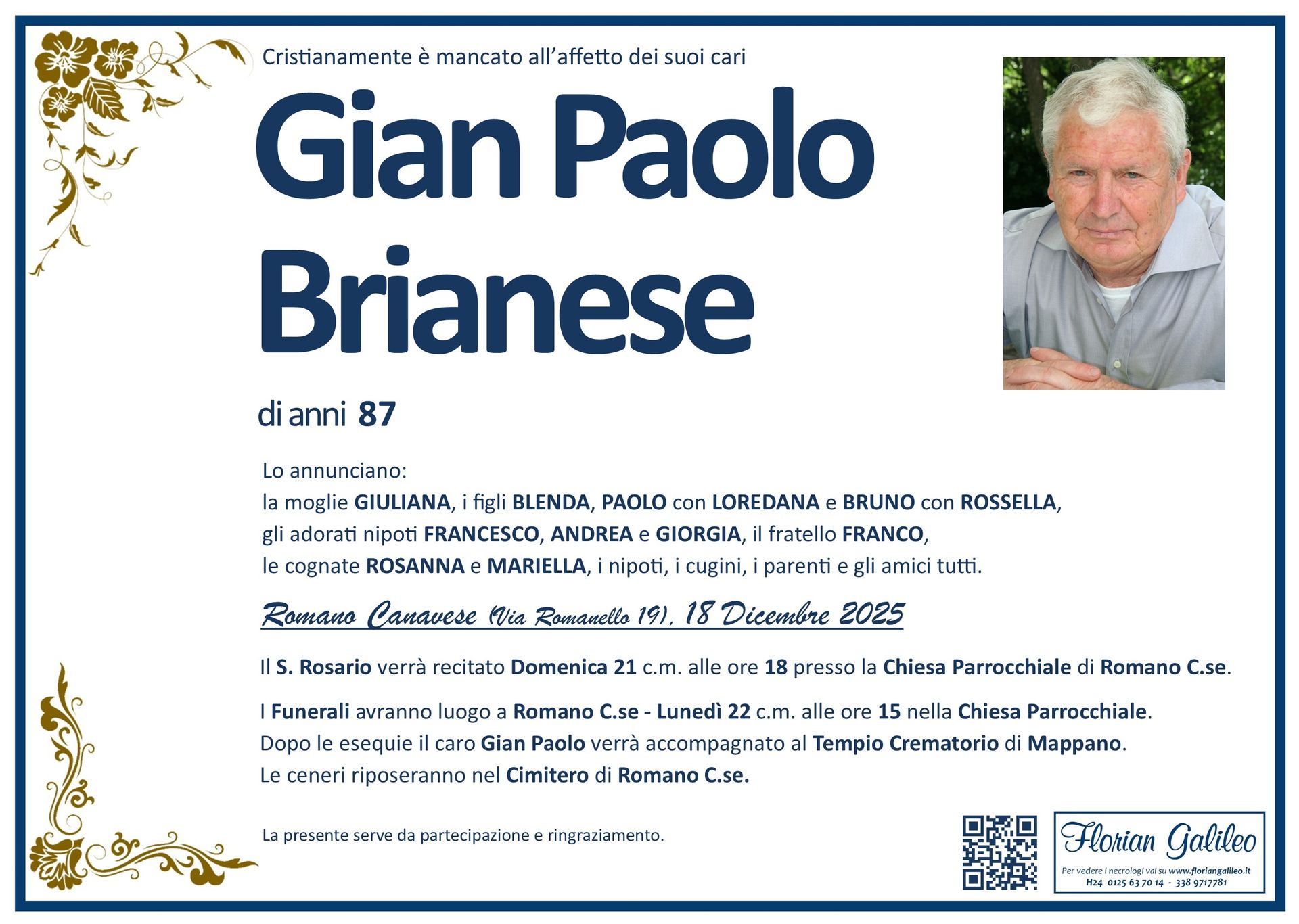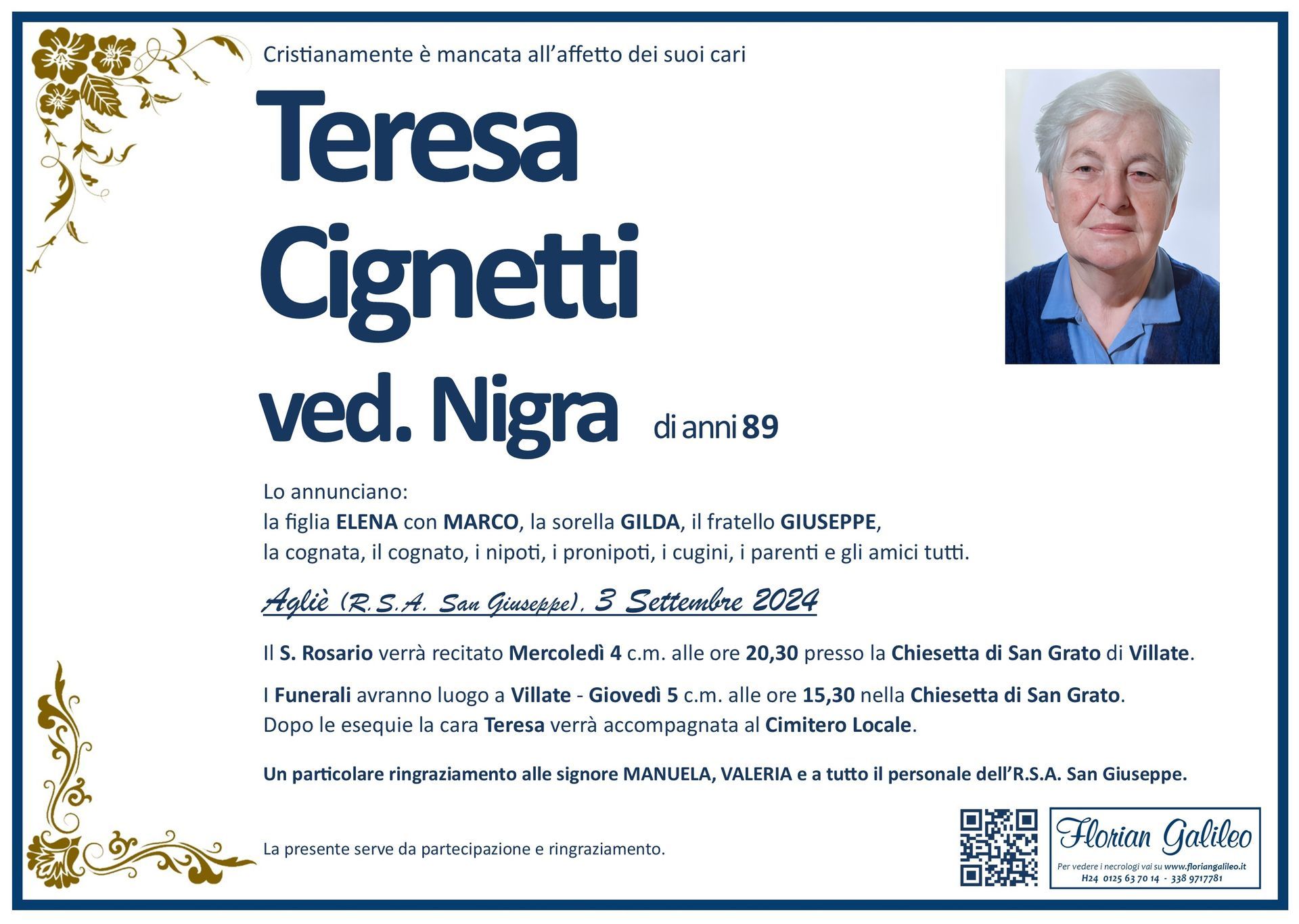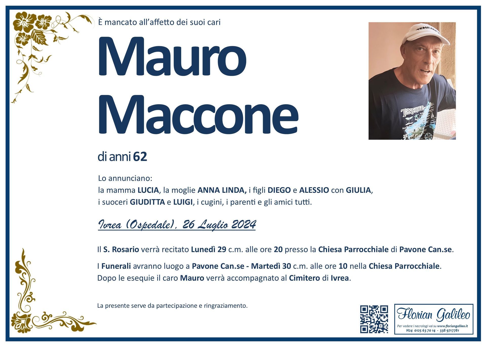 La Florian Galileo, ditta di Onoranze funebri di Strambino, Ivrea e dintorni ha creato questa pagina per rendere visibili anche on line le epigrafi dei cari defunti e per dare,