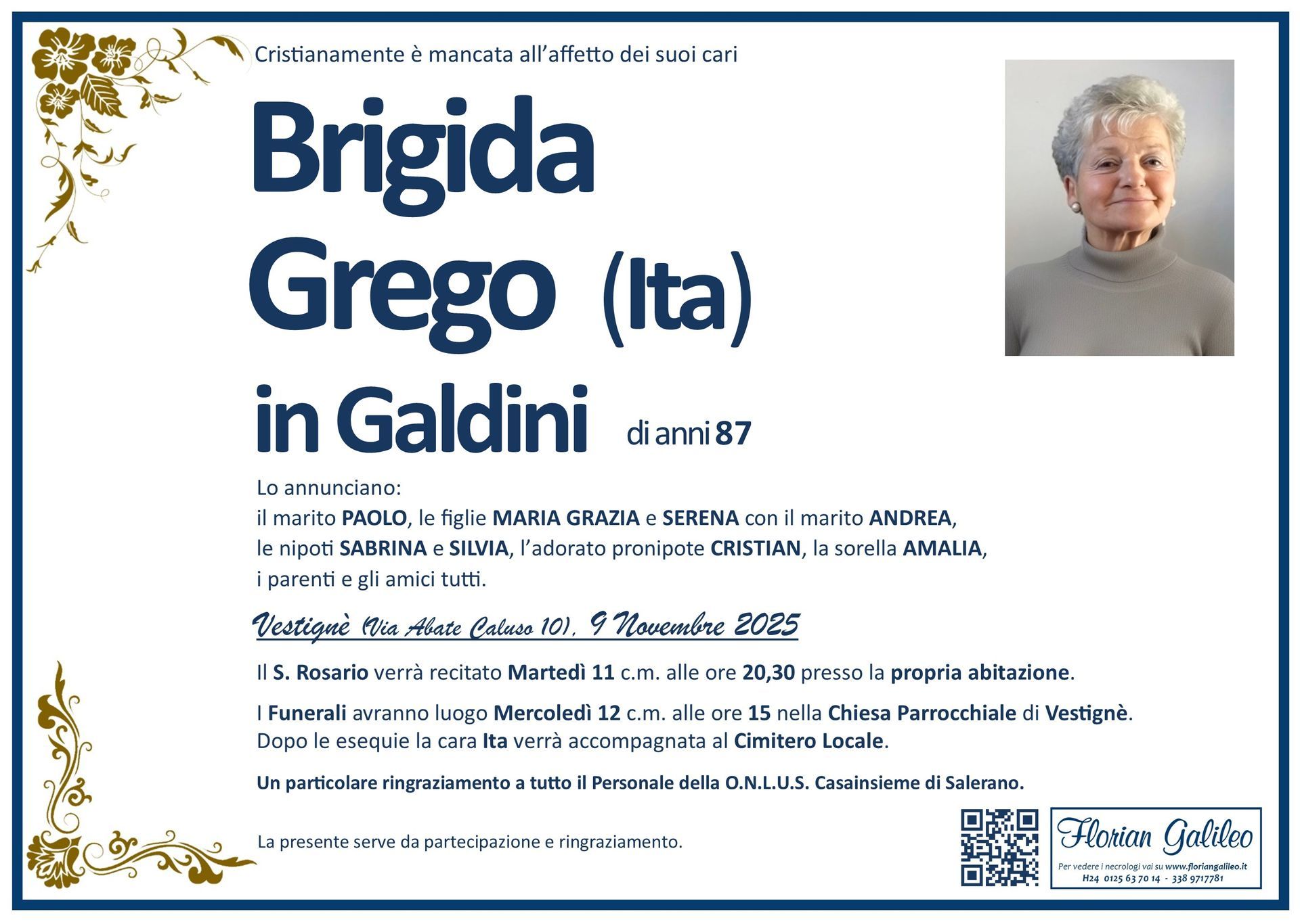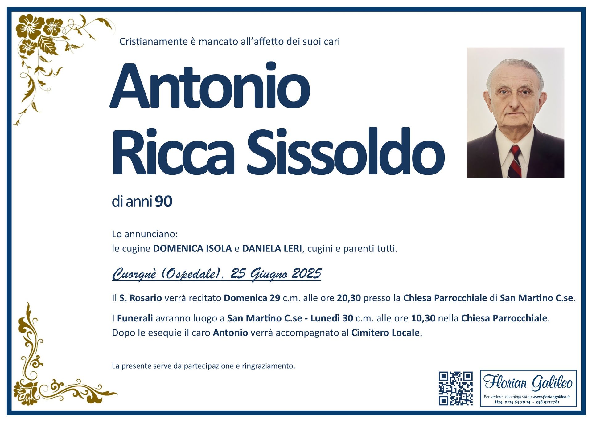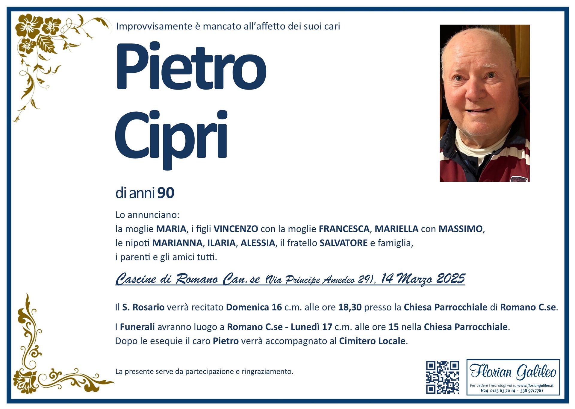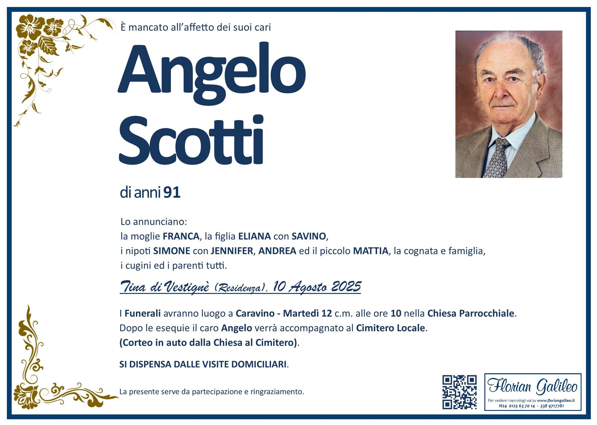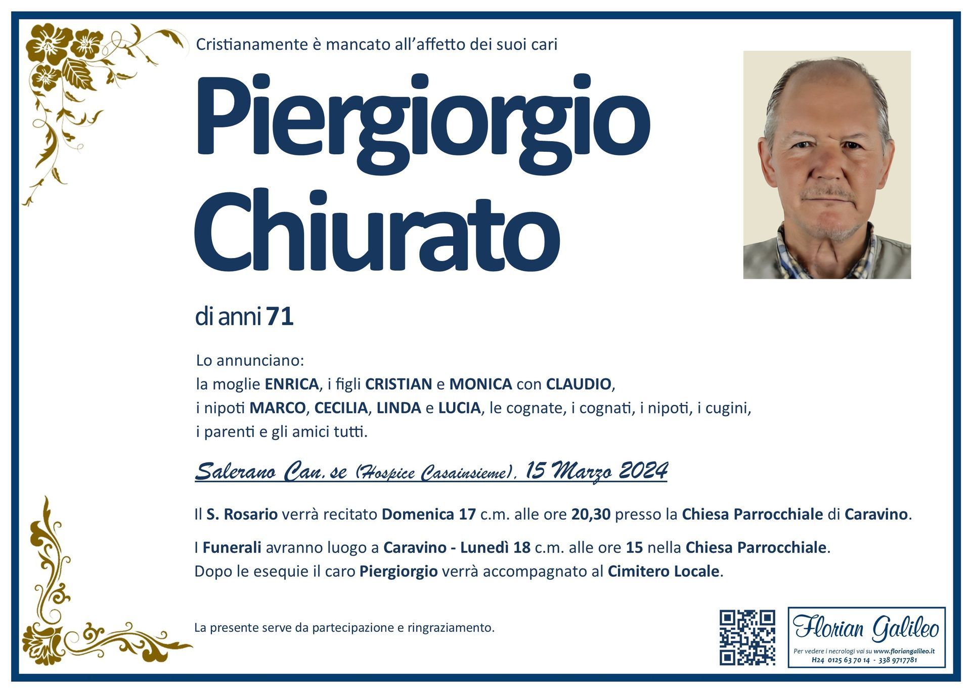 La Florian Galileo, ditta di Onoranze funebri di Strambino, Ivrea e dintorni ha creato questa pagina per rendere visibili anche on line le epigrafi dei cari defunti e per dare,