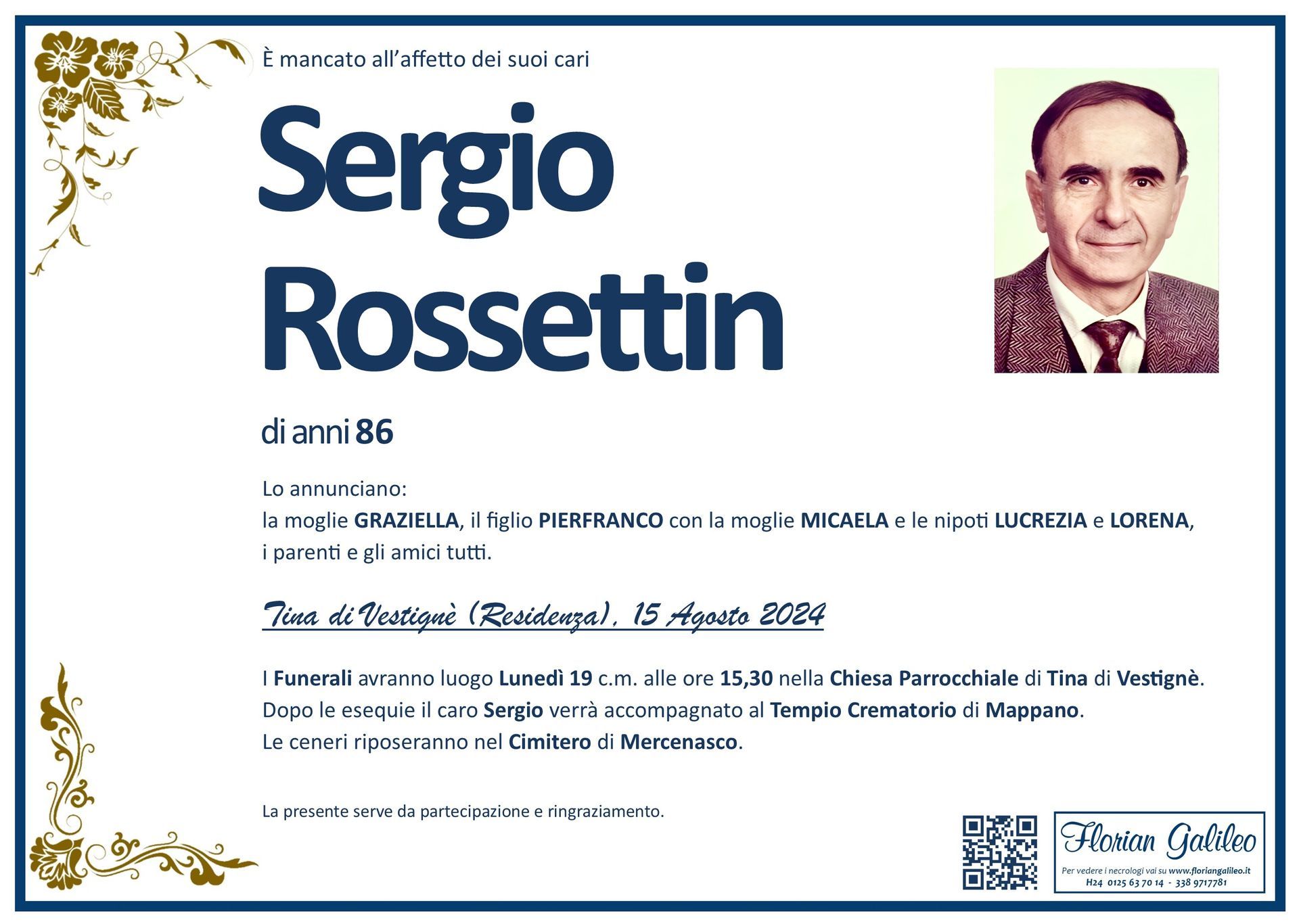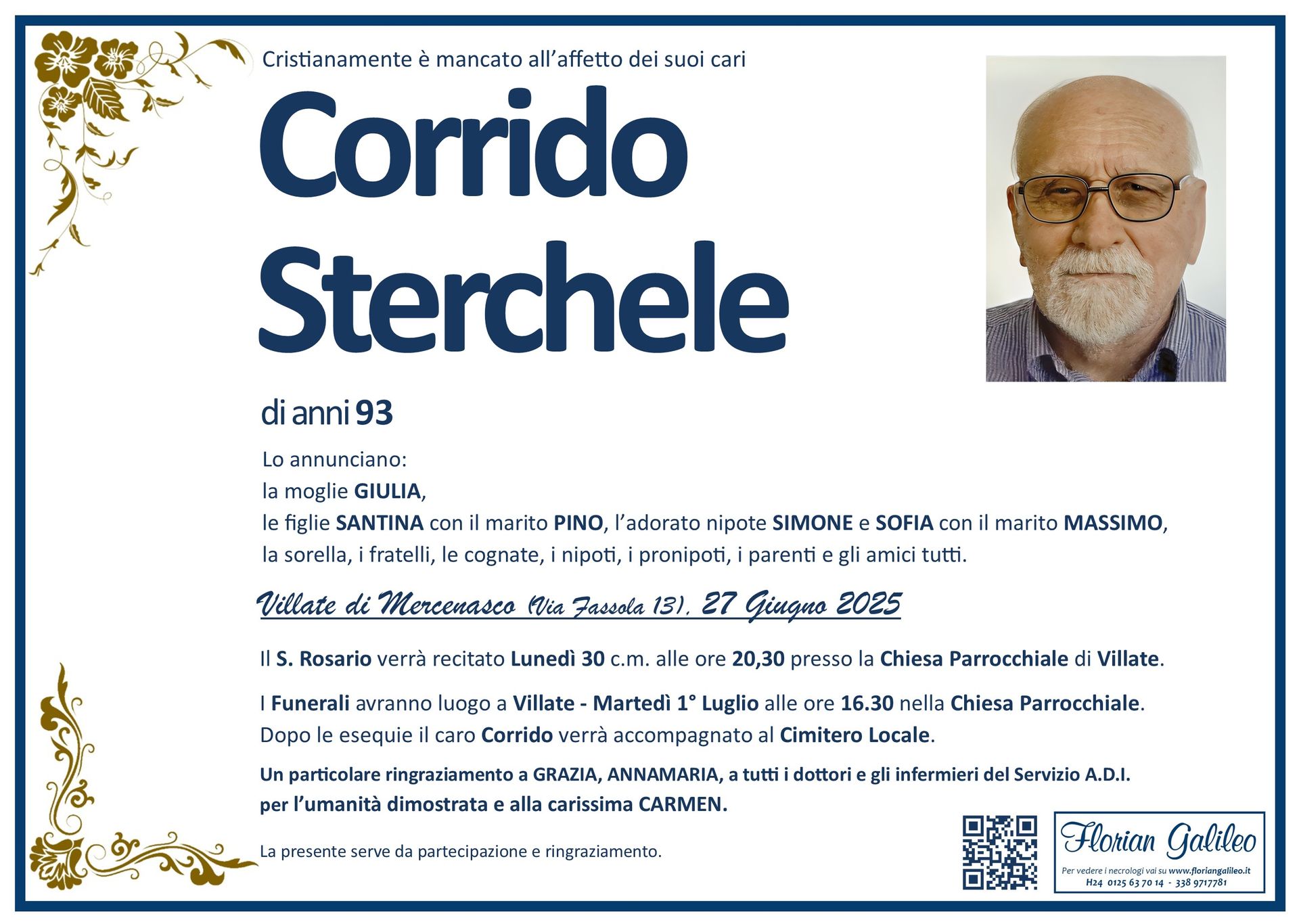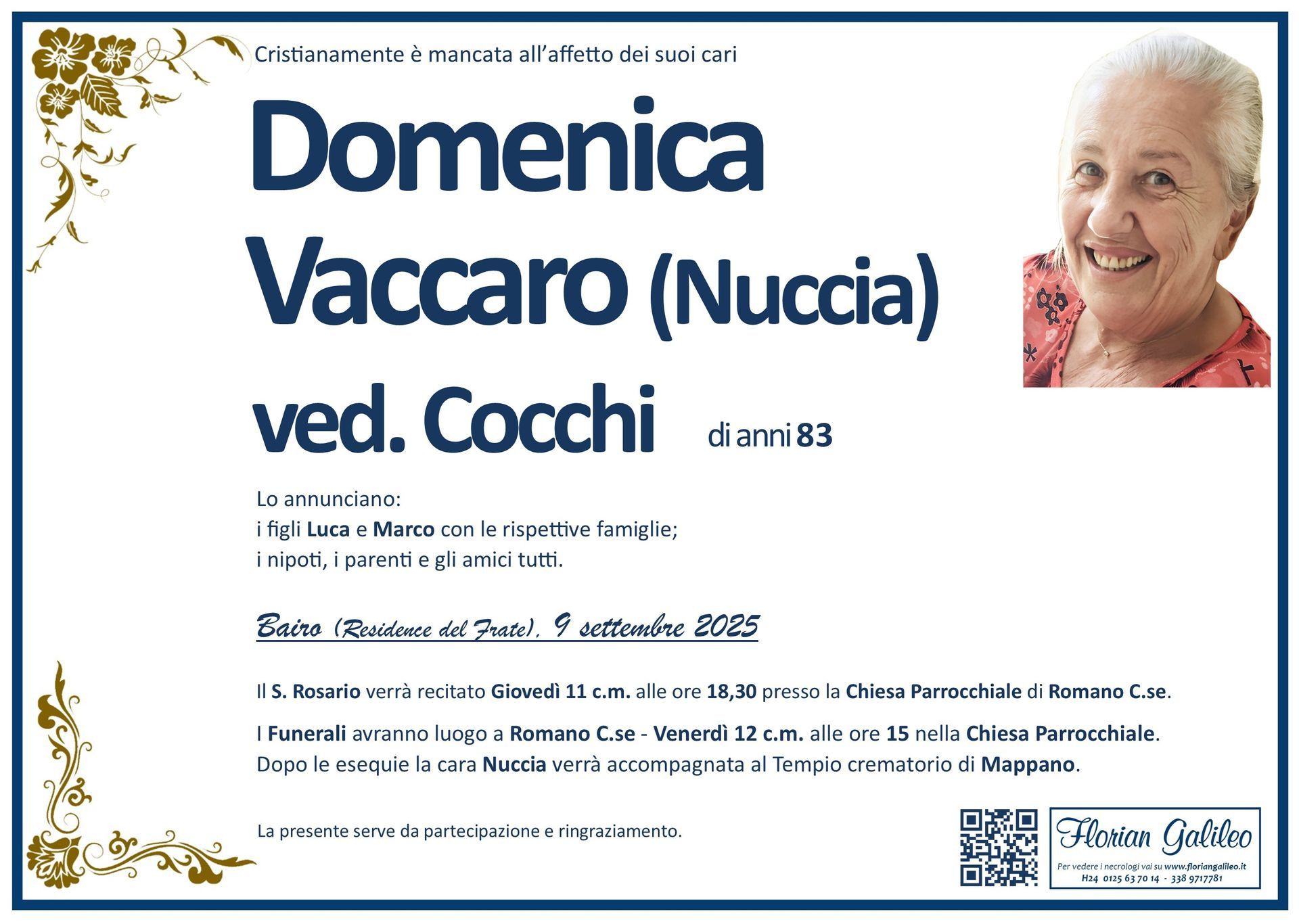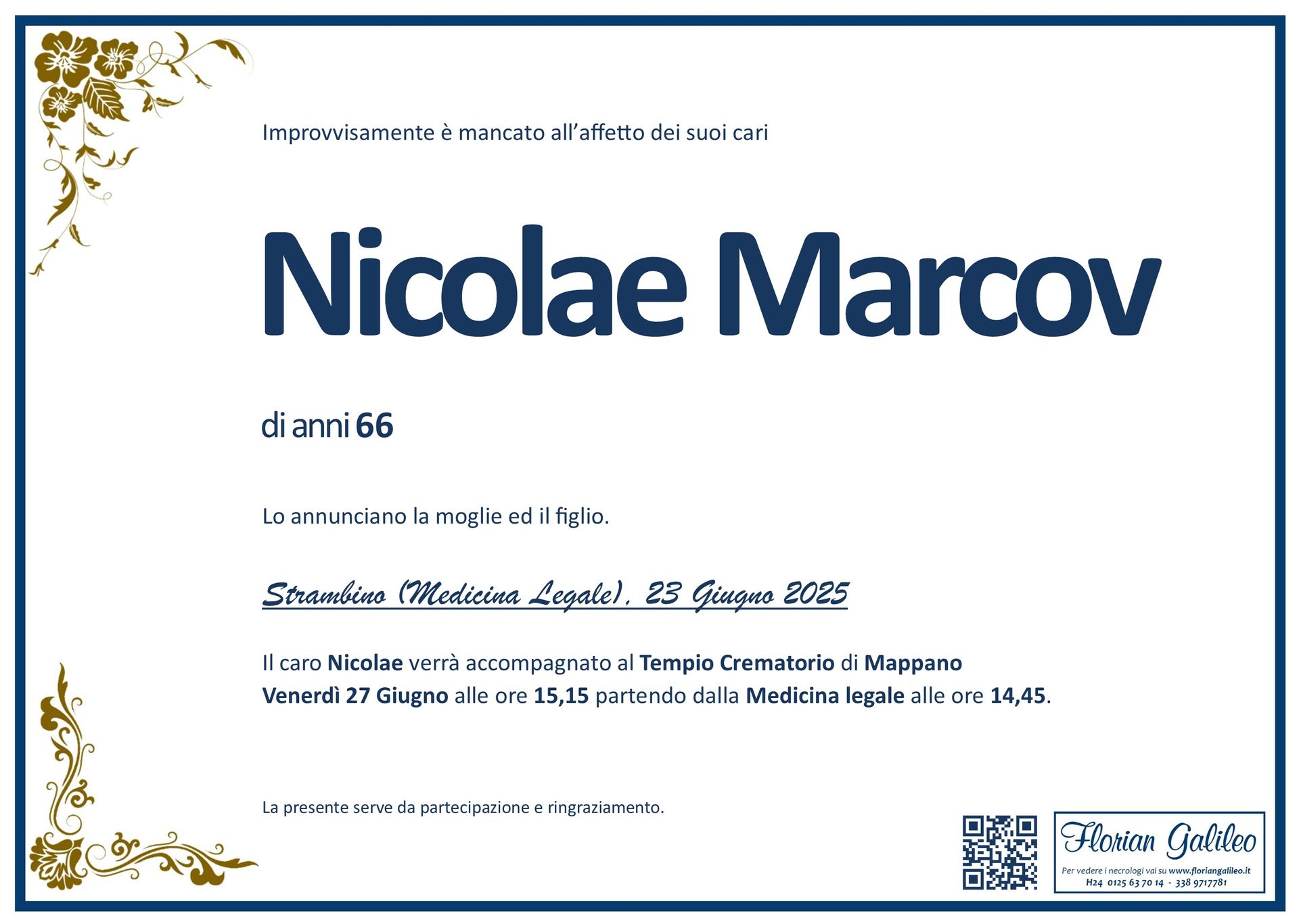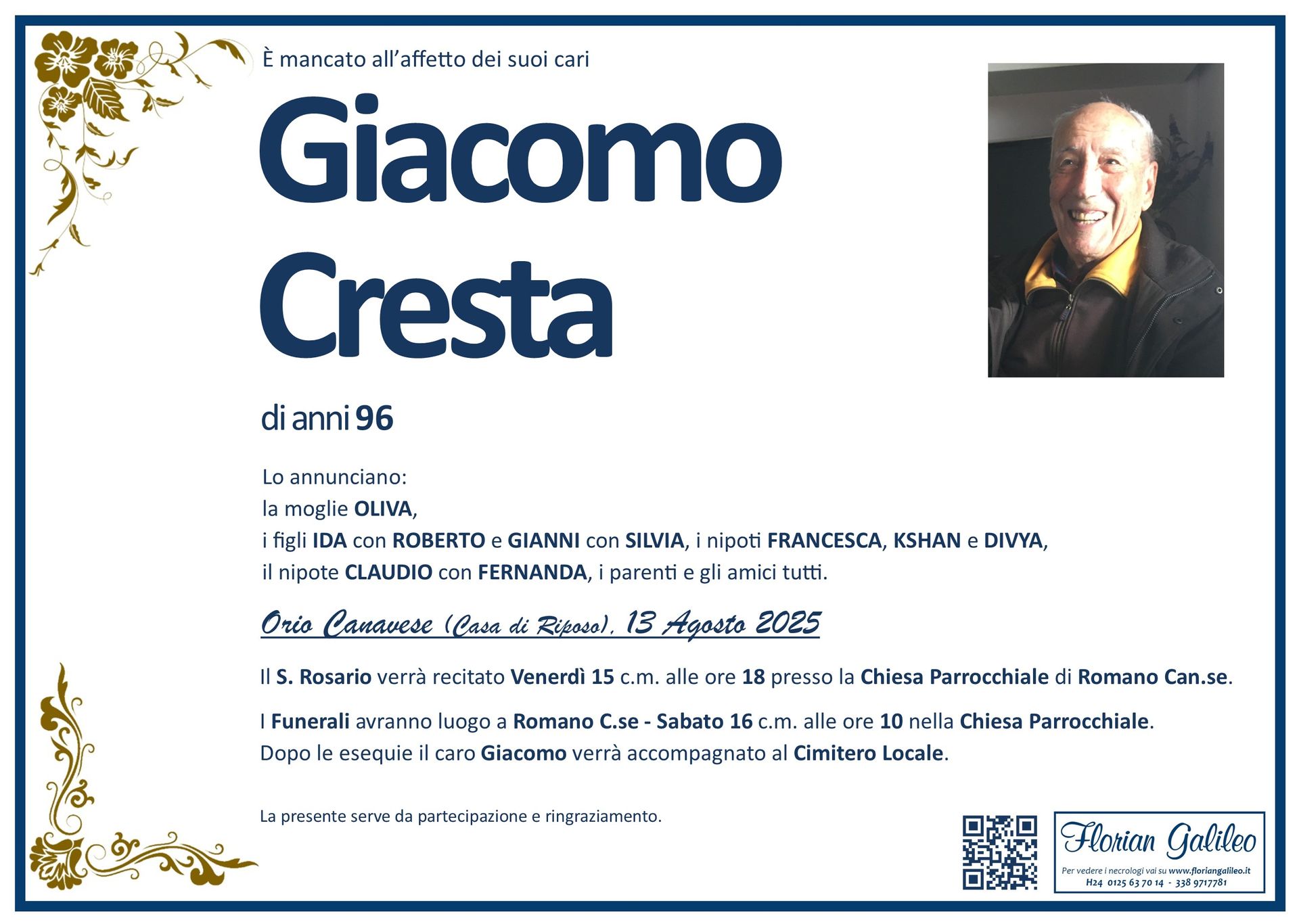 La Florian Galileo, ditta di Onoranze funebri di Strambino, Ivrea e dintorni ha creato questa pagina per rendere visibili anche on line le epigrafi dei cari defunti e per dare,