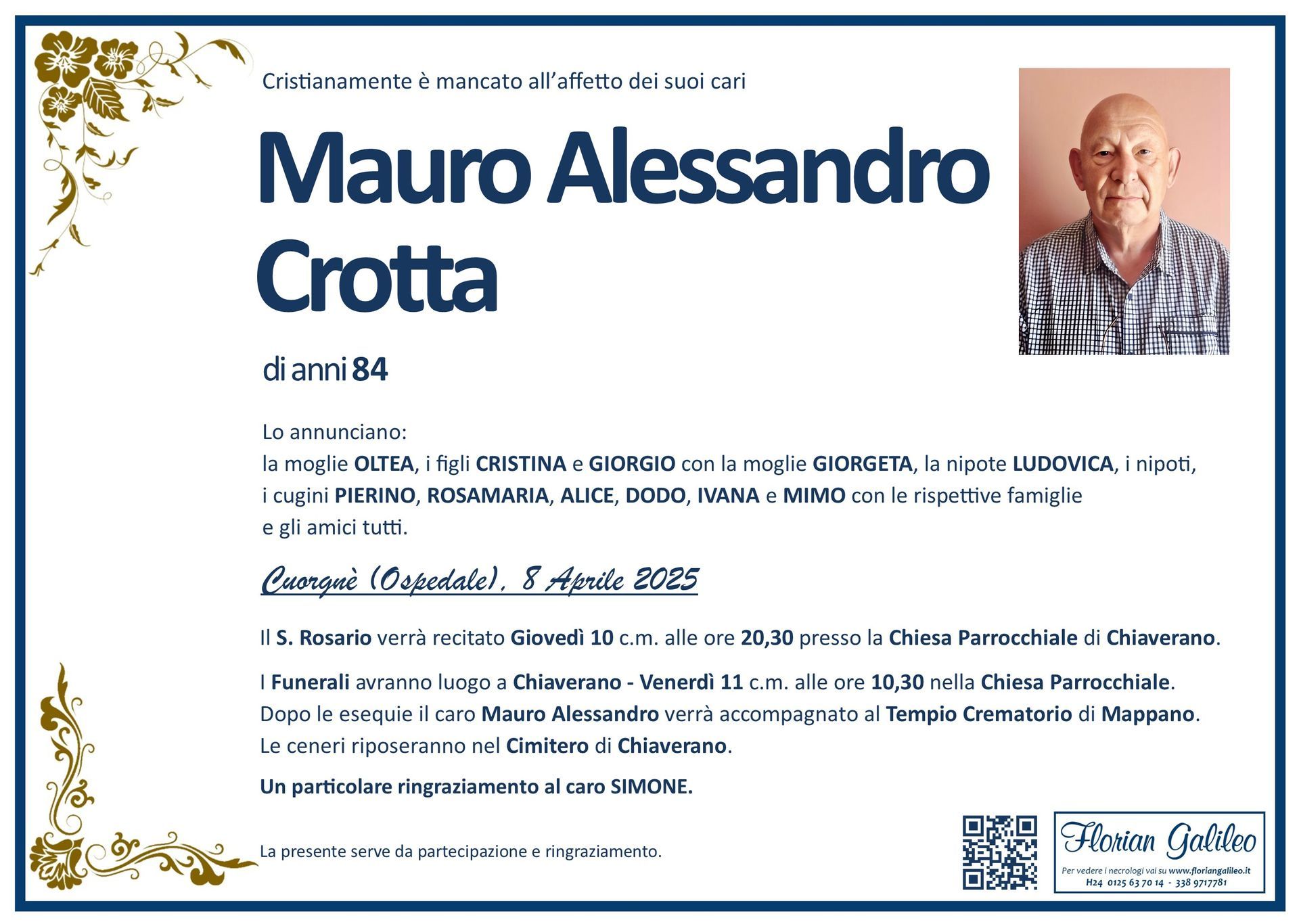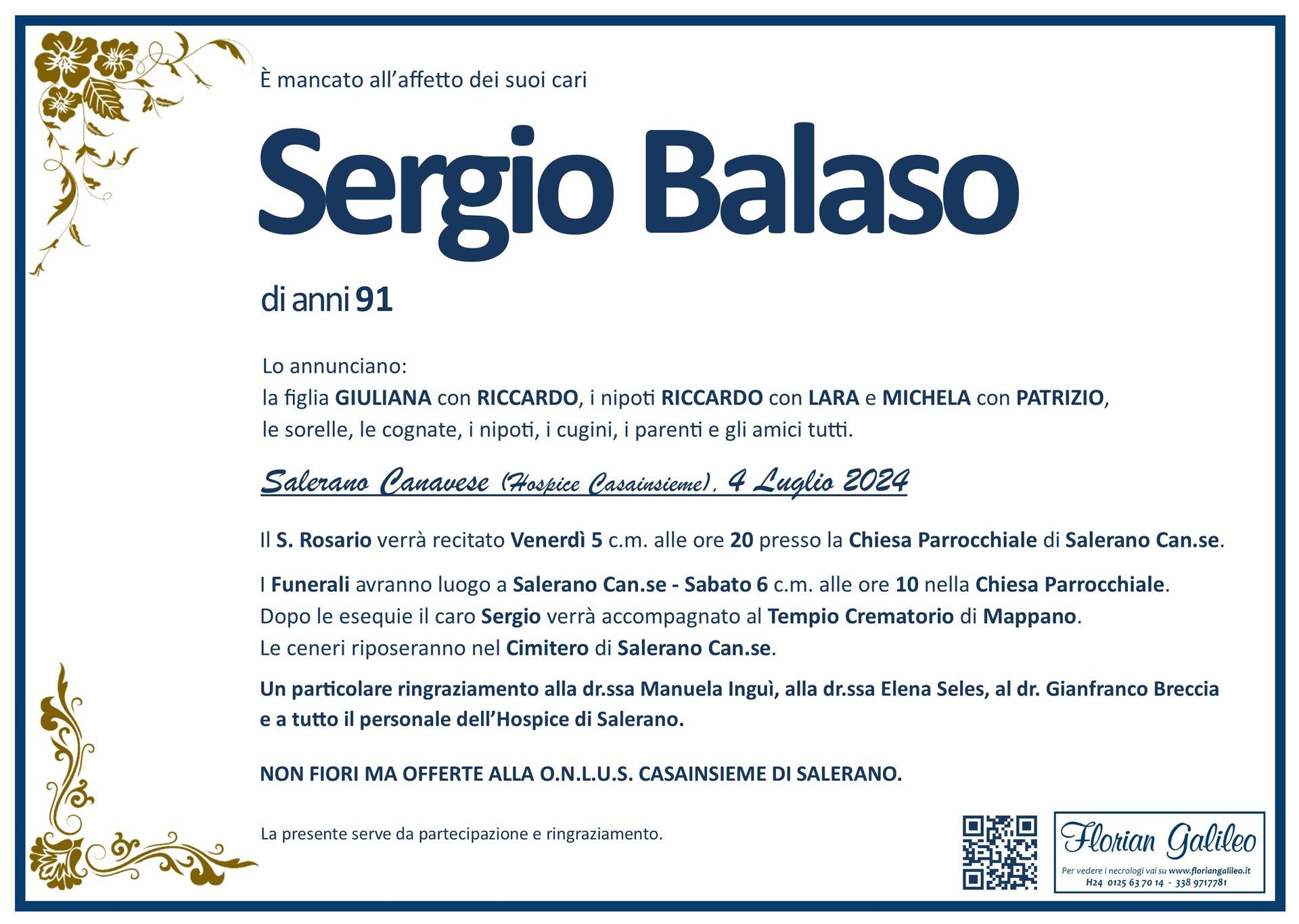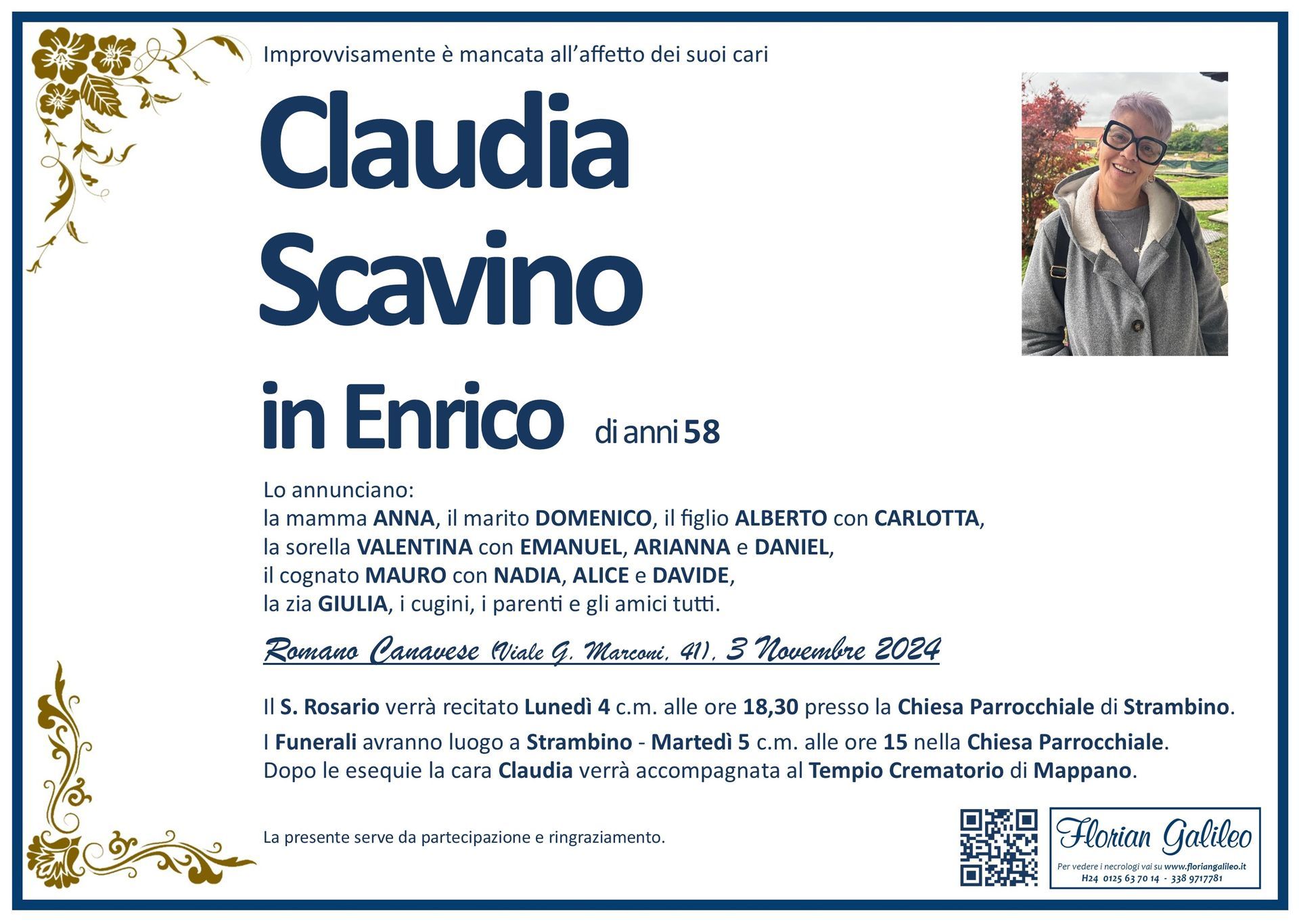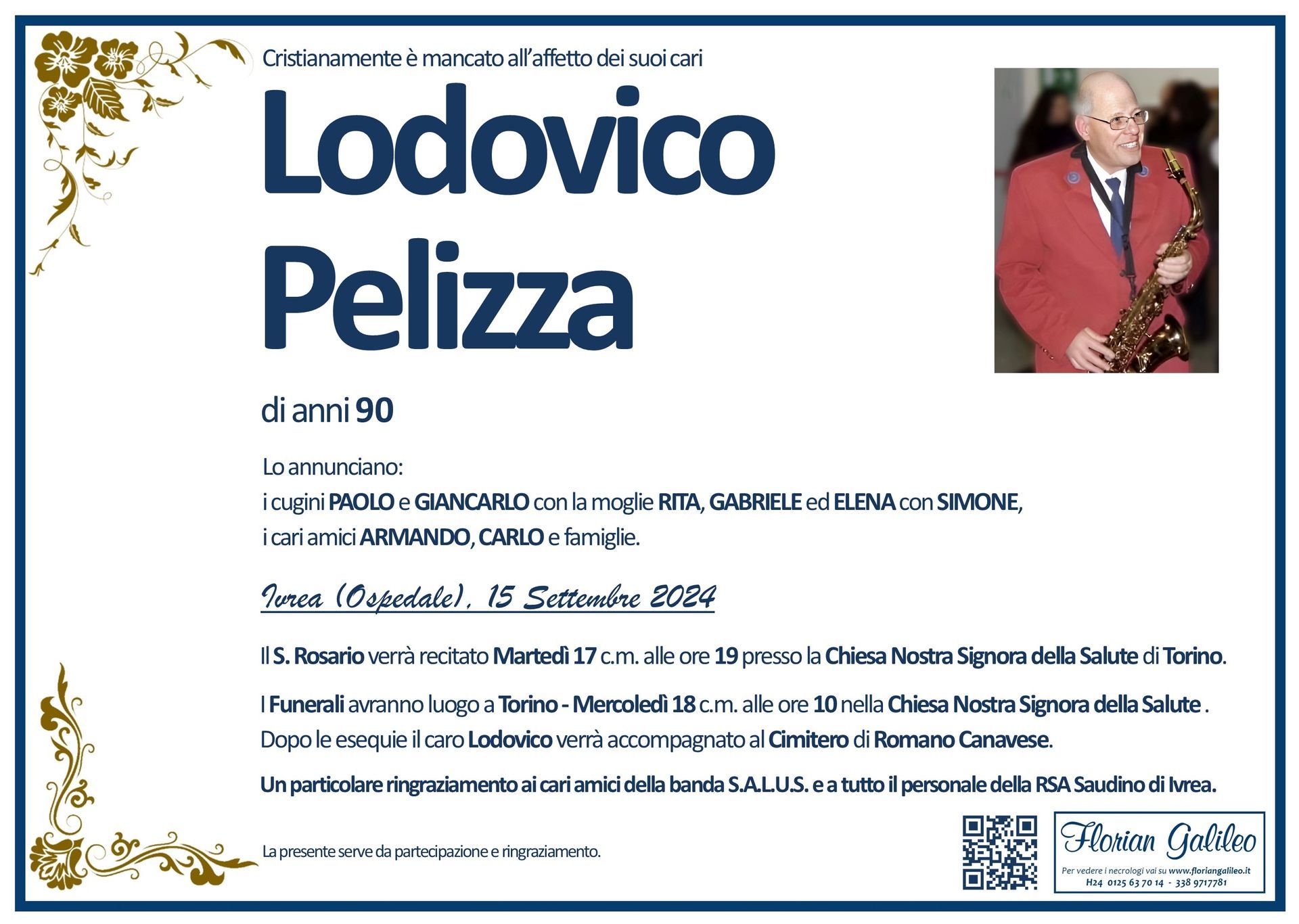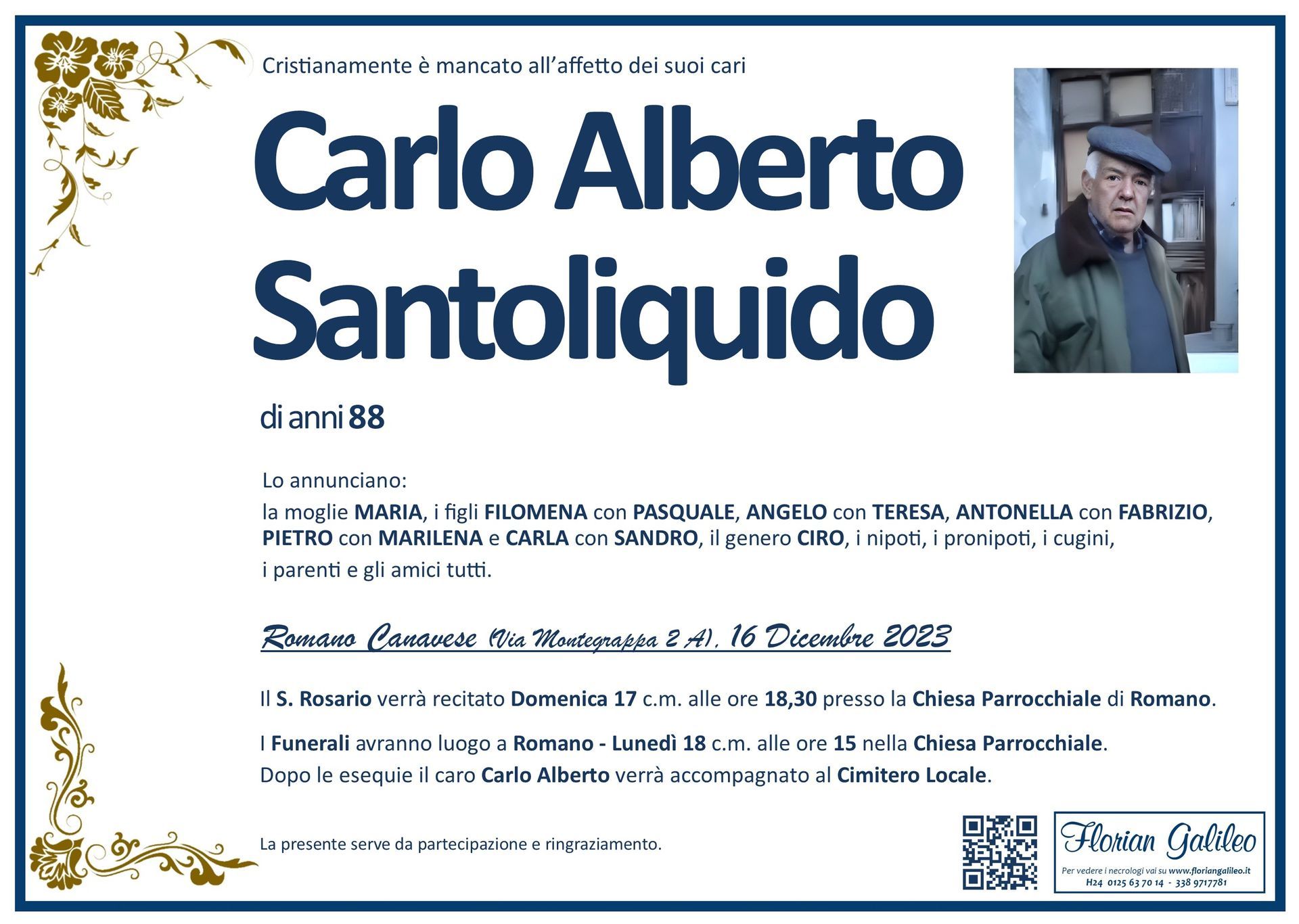 La Florian Galileo, ditta di Onoranze funebri di Strambino, Ivrea e dintorni ha creato questa pagina per rendere visibili anche on line le epigrafi dei cari defunti e per dare,