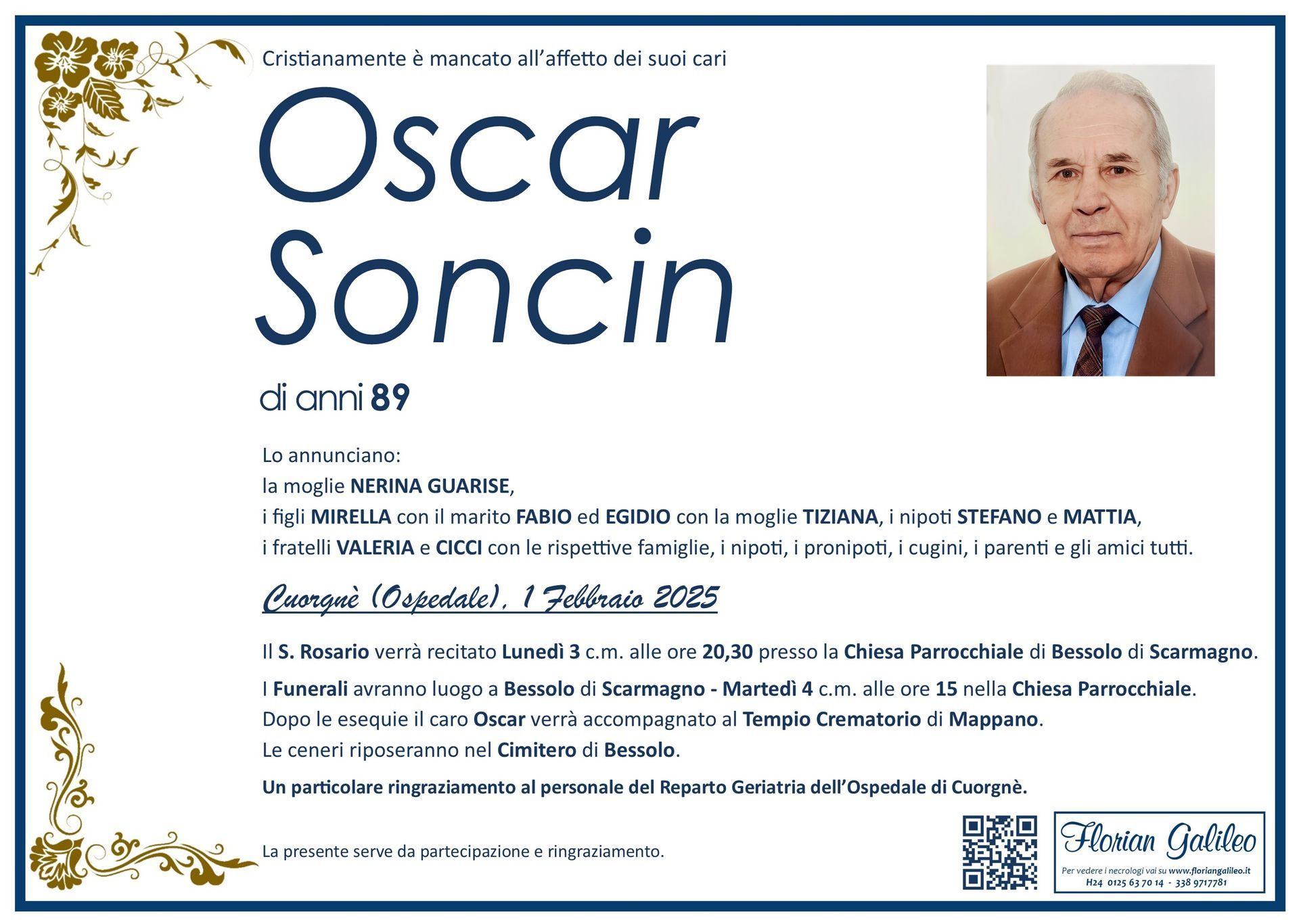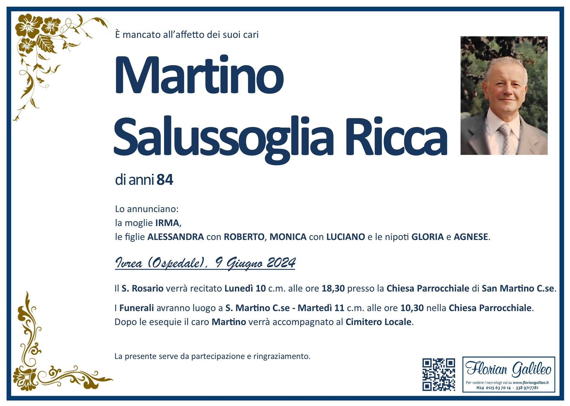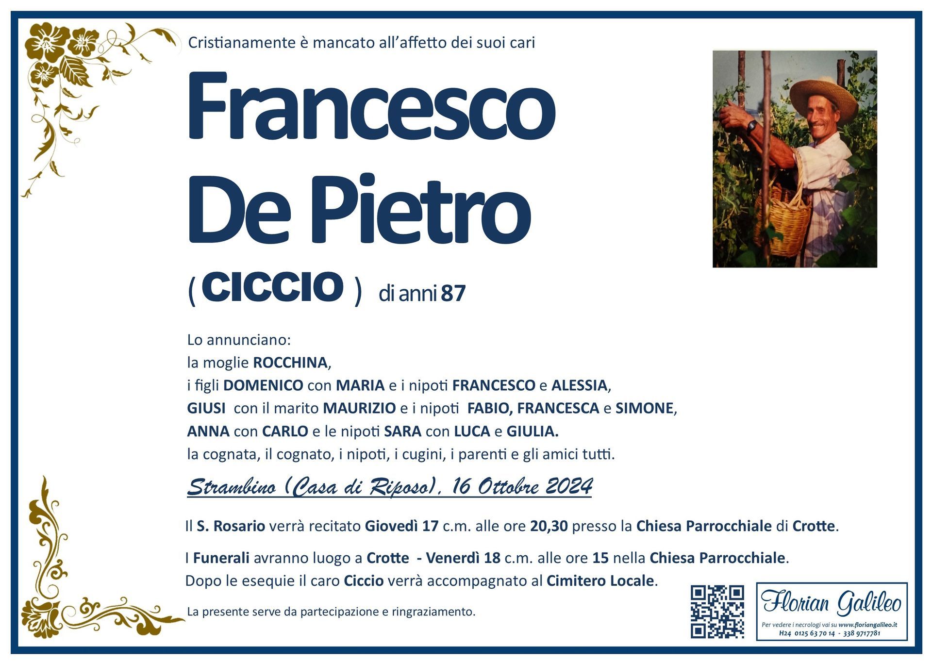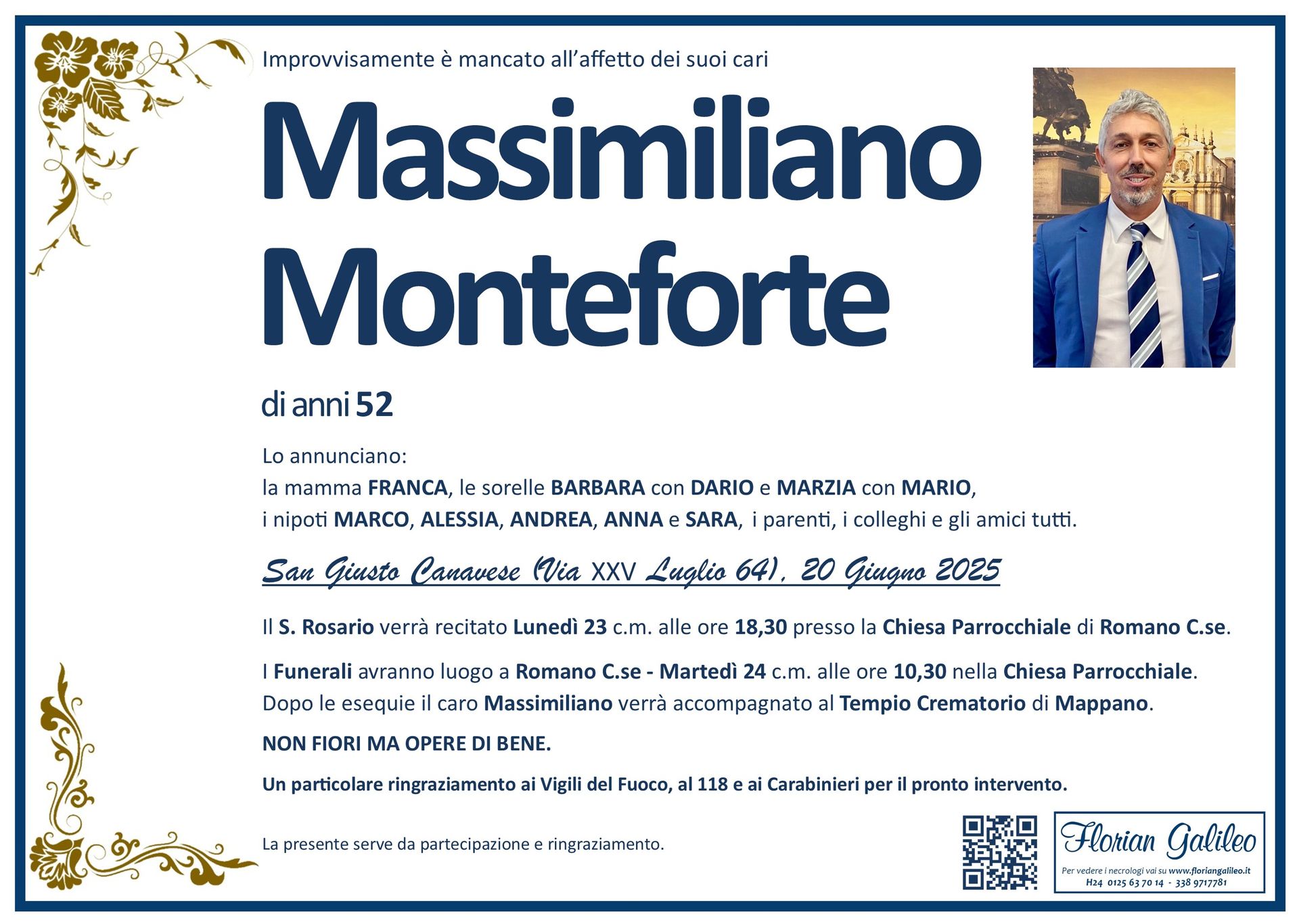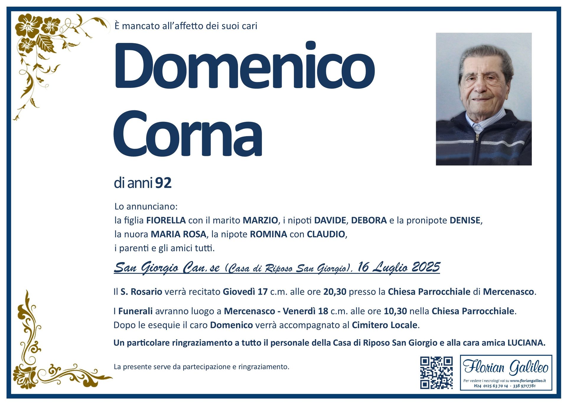 La Florian Galileo, ditta di Onoranze funebri di Strambino, Ivrea e dintorni ha creato questa pagina per rendere visibili anche on line le epigrafi dei cari defunti e per dare,