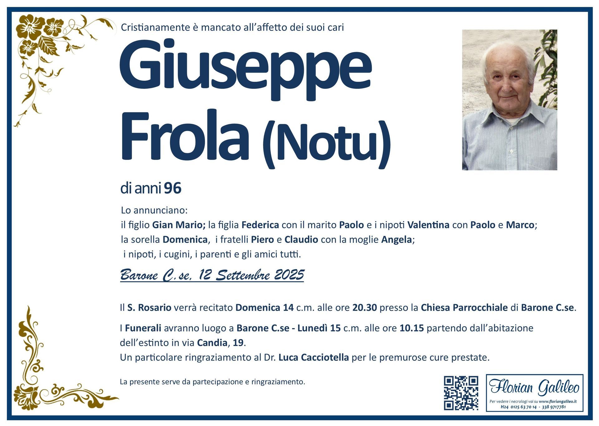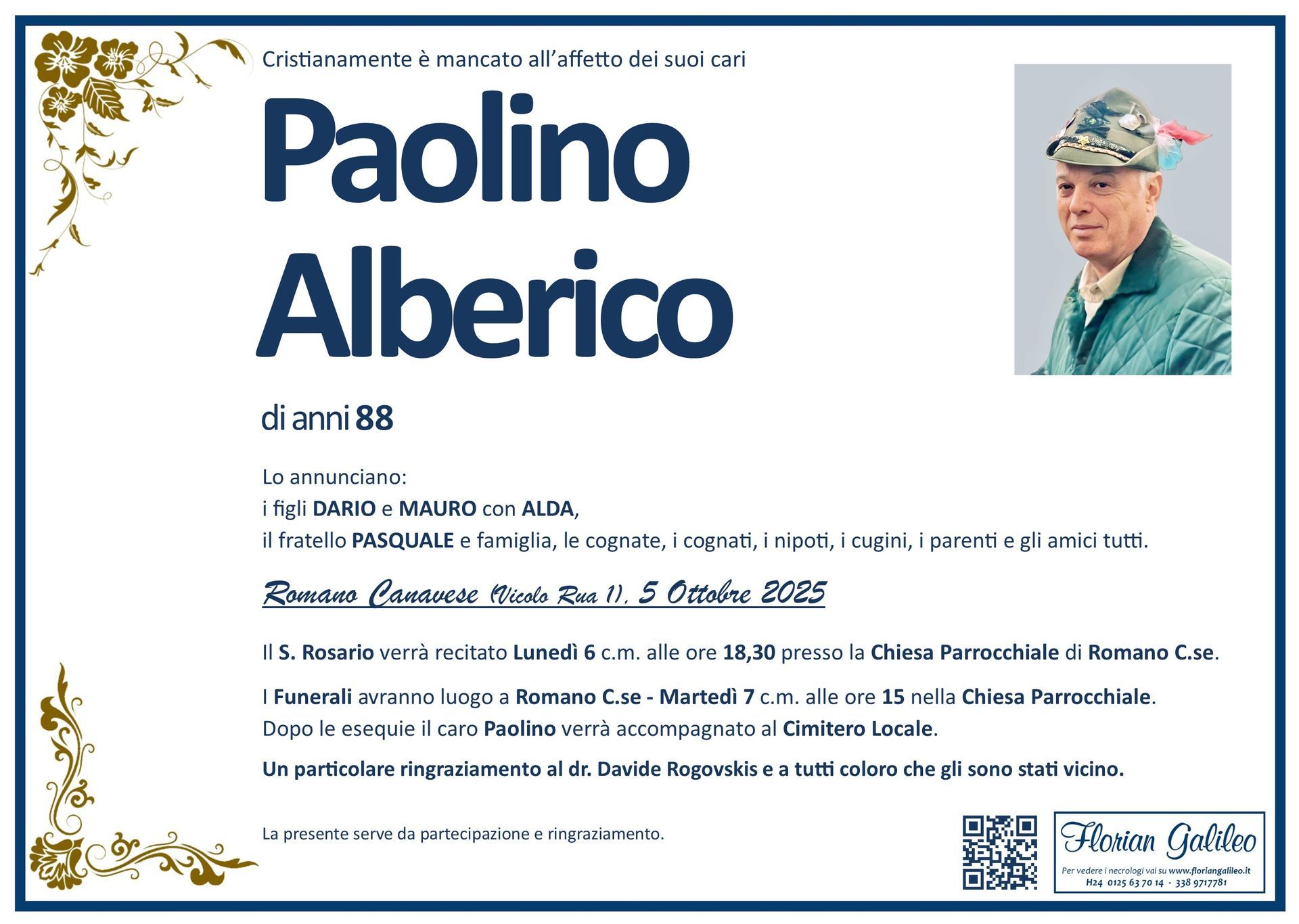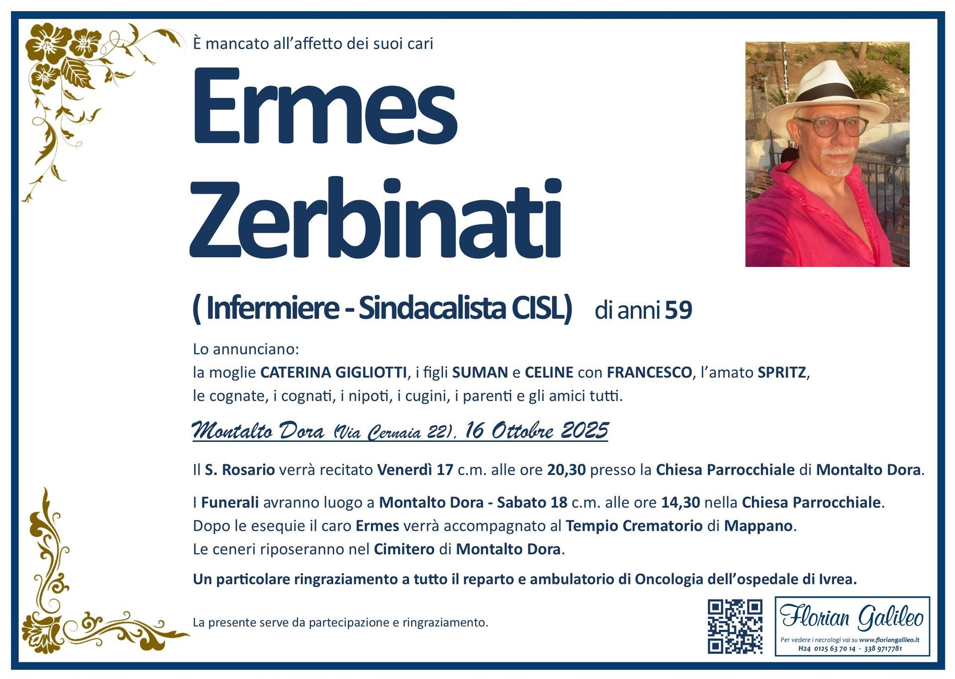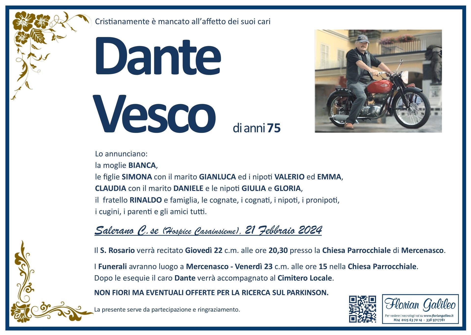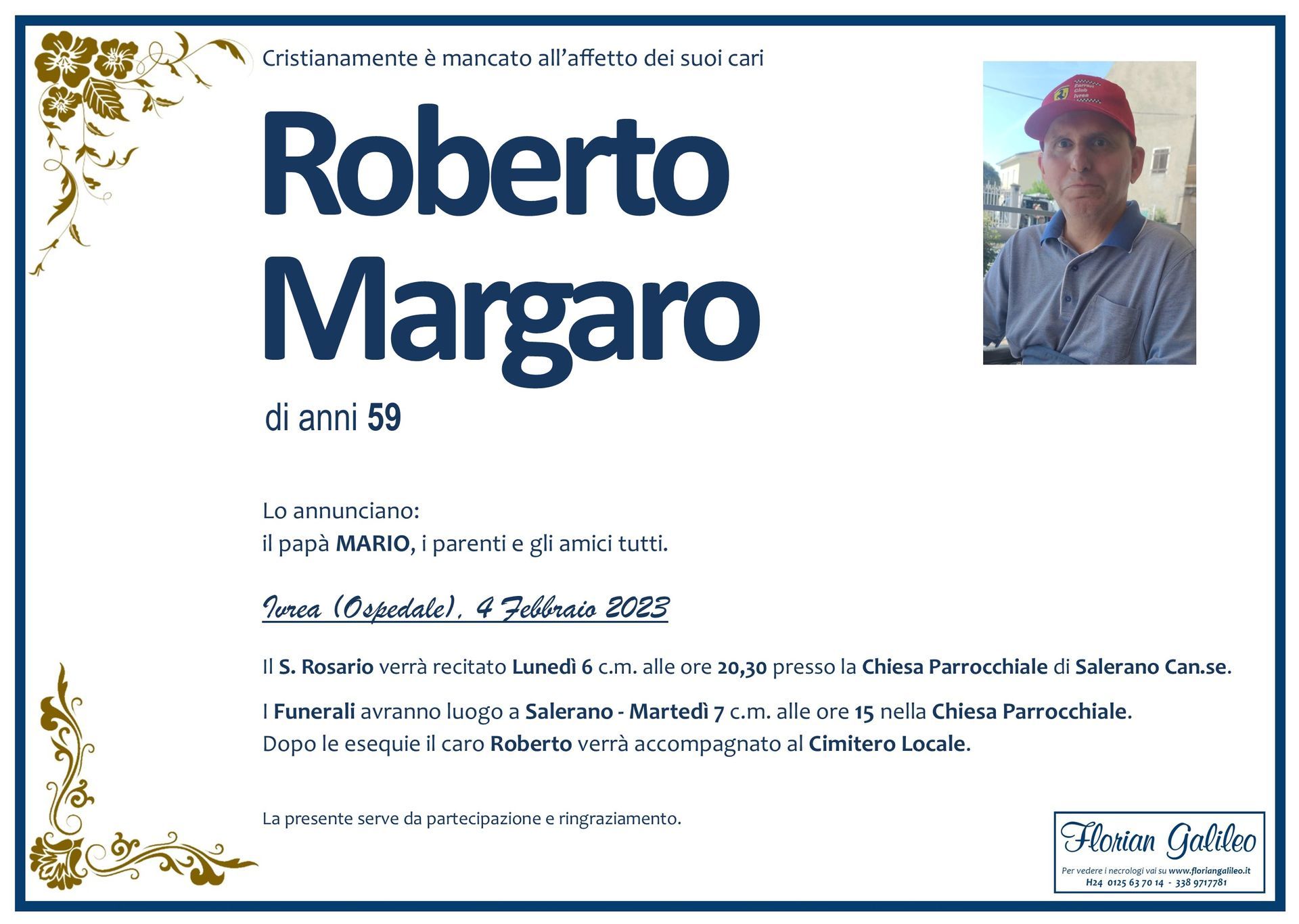 La Florian Galileo, ditta di Onoranze funebri di Strambino, Ivrea e dintorni ha creato questa pagina per rendere visibili anche on line le epigrafi dei cari defunti e per dare,